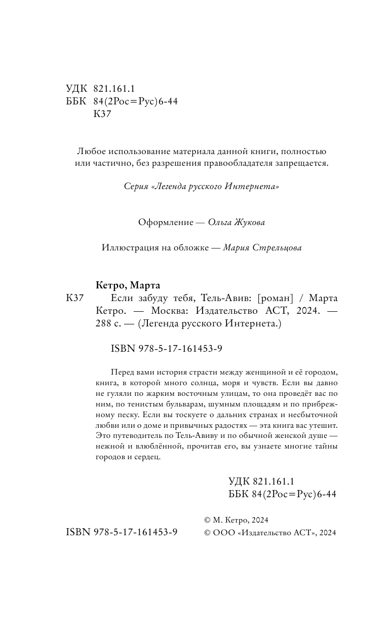Если забуду тебя Тель-Авив (Марта Кетро); Издательство АСТ, 2024
