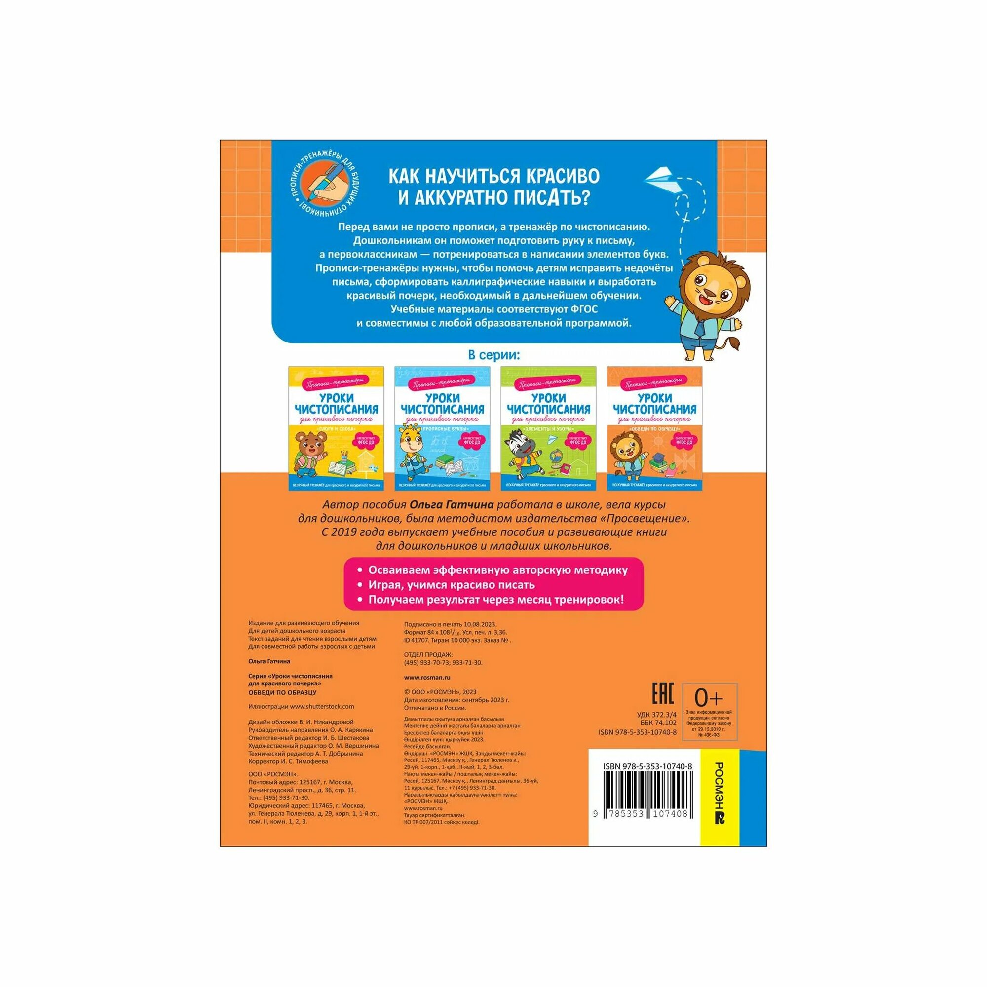 Прописи-тренажеры. Уроки чистописания для красивого почерка. Обведи по образцу (Гатчина О.); РОСМЭН, 2023