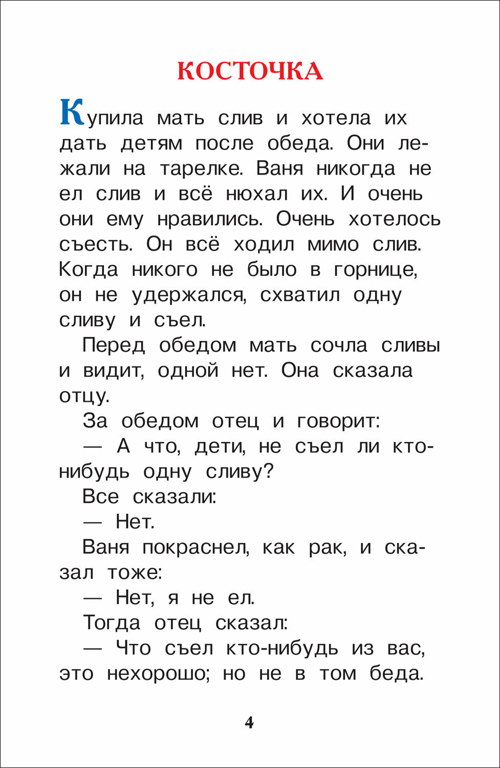 В книгу вошли рассказы, сказки и басни великого русского писателя Льва Толстого, адресованные детям: «Косточка», «Подкидыш», «Старая лошадь», «Ровное наследство», «Лев и мышь» и другие. Они созданы в начале 1870-х гг. для учеников школы, организованной Толстым в Ясной Поляне, и любимы многими поколениями детей.