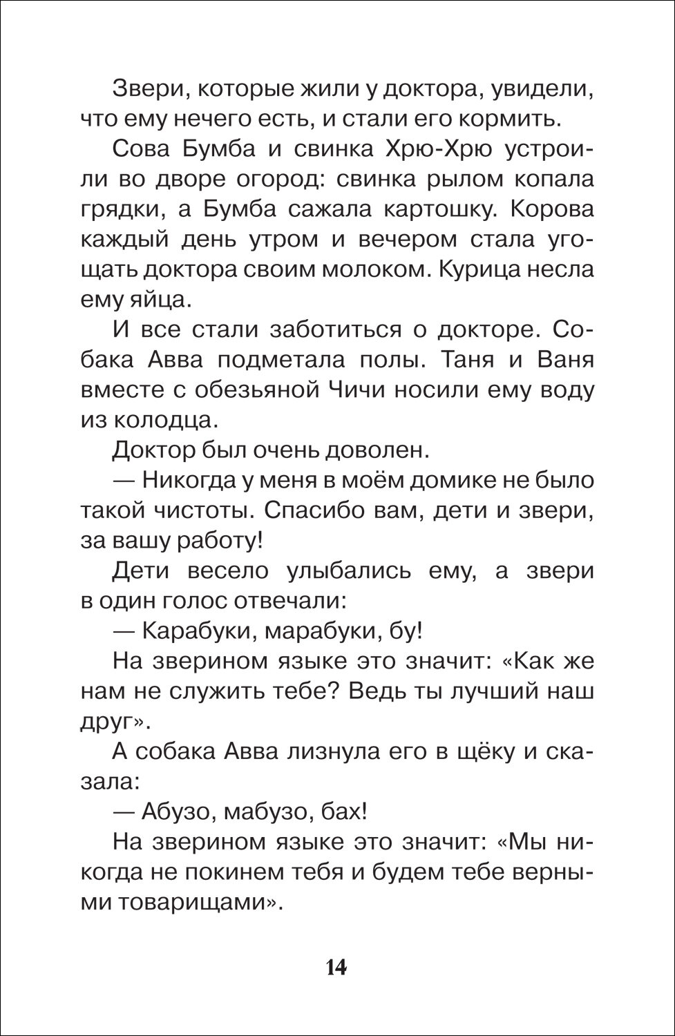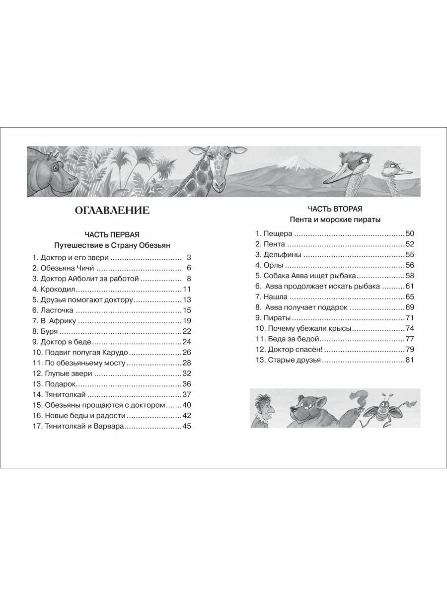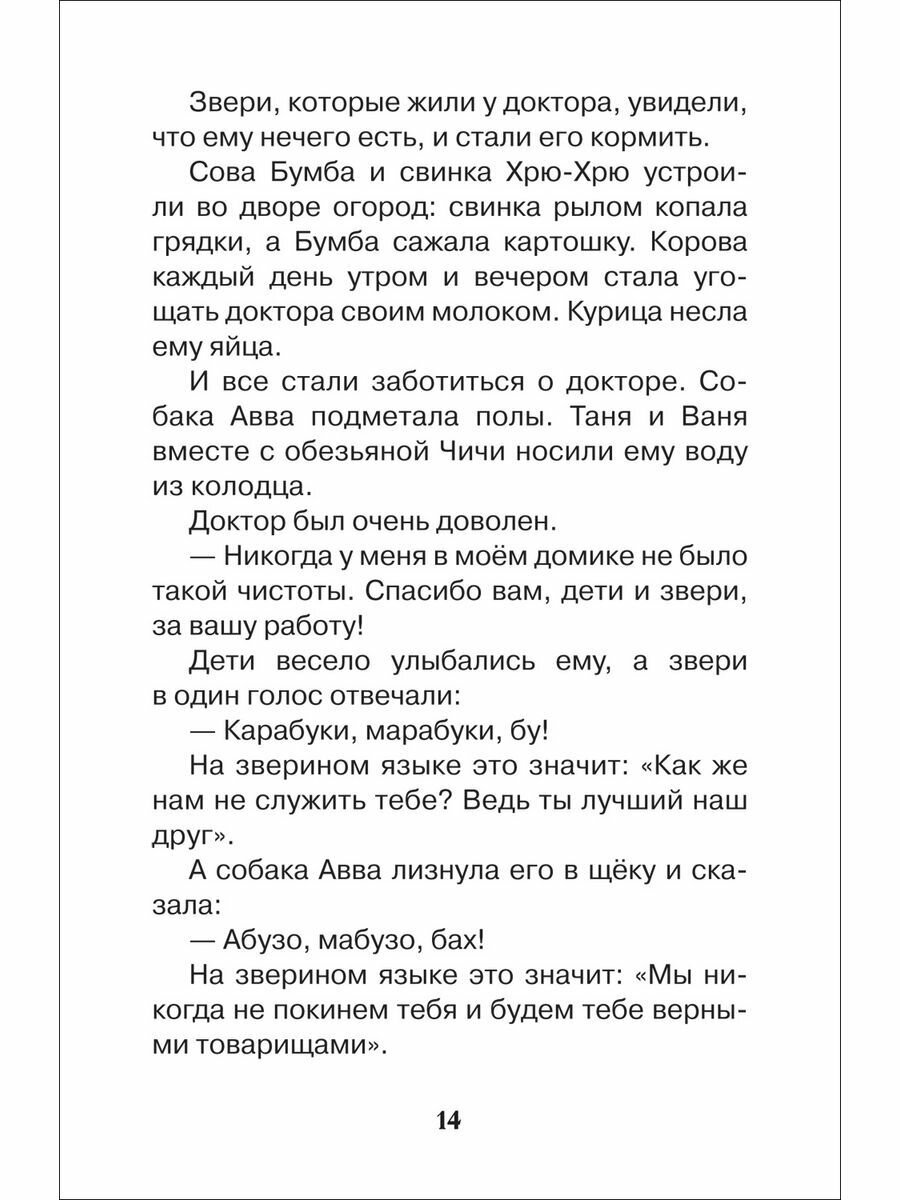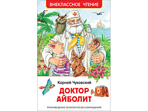 Доброго доктора Айболита знают и любят все дети в нашей стране. Малышам читают стихотворный вариант сказки, а тем, кто постарше, обязательно понравится «Доктор Айболит» в прозе. Главный герой отправляется в опасное путешествие в Африку, чтобы вылечить заболевших зверей, отважно сражается с Бармалеем и пиратами, спасает мальчика Пенту и его отца. А помогают Айболиту верные друзья — собака Авва, утка Кика, свинка Хрю-Хрю, попугай Карудо и сова Бумба.