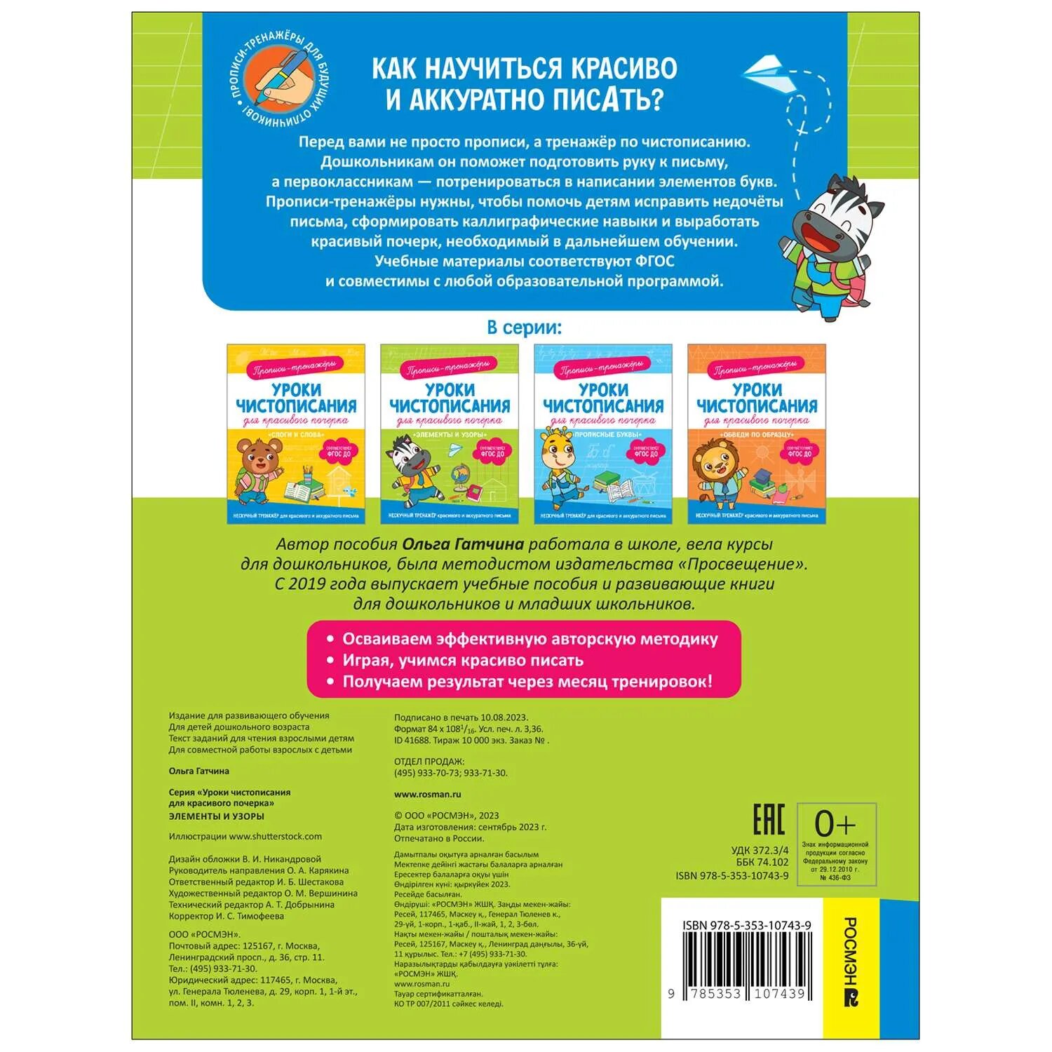 Прописи-тренажеры. Уроки чистописания для красивого почерка. Элементы и узоры (Гатчина О.); РОСМЭН, 2023