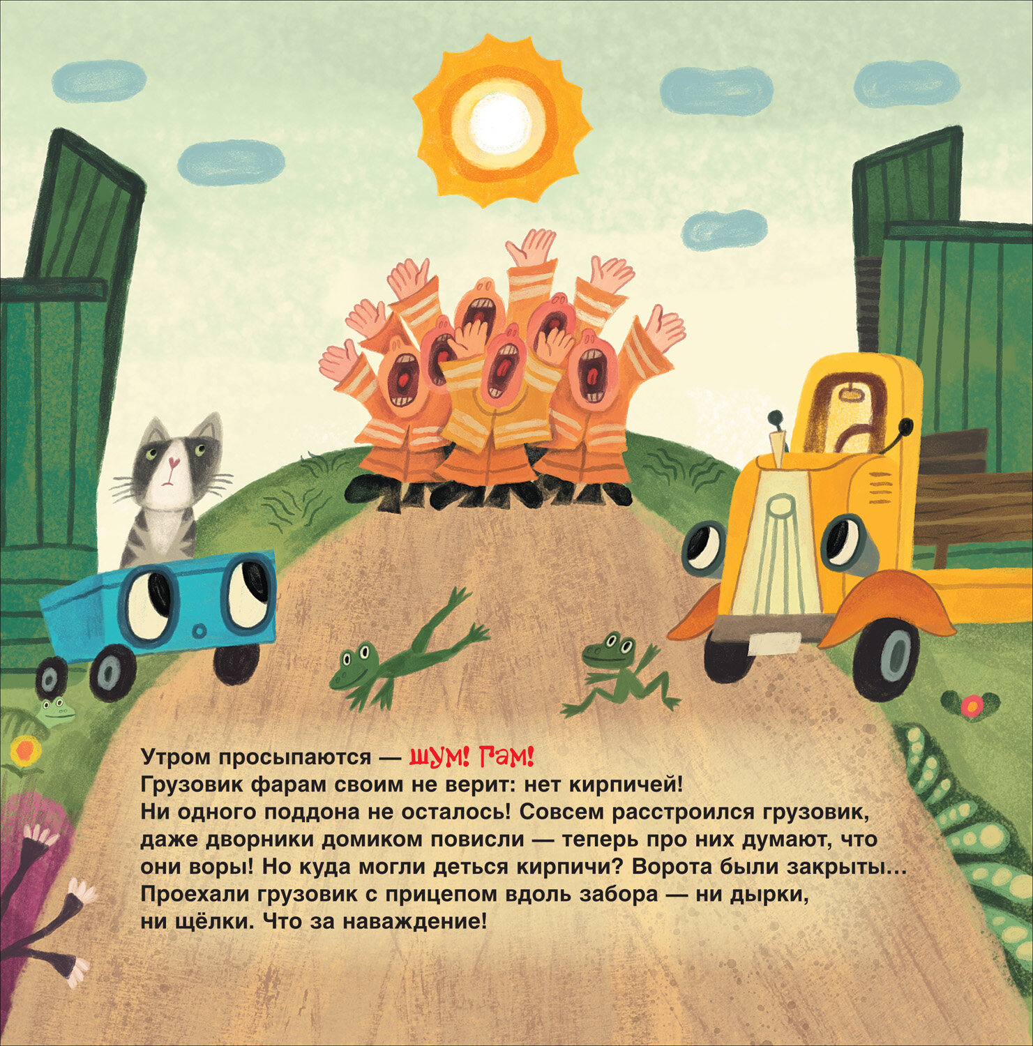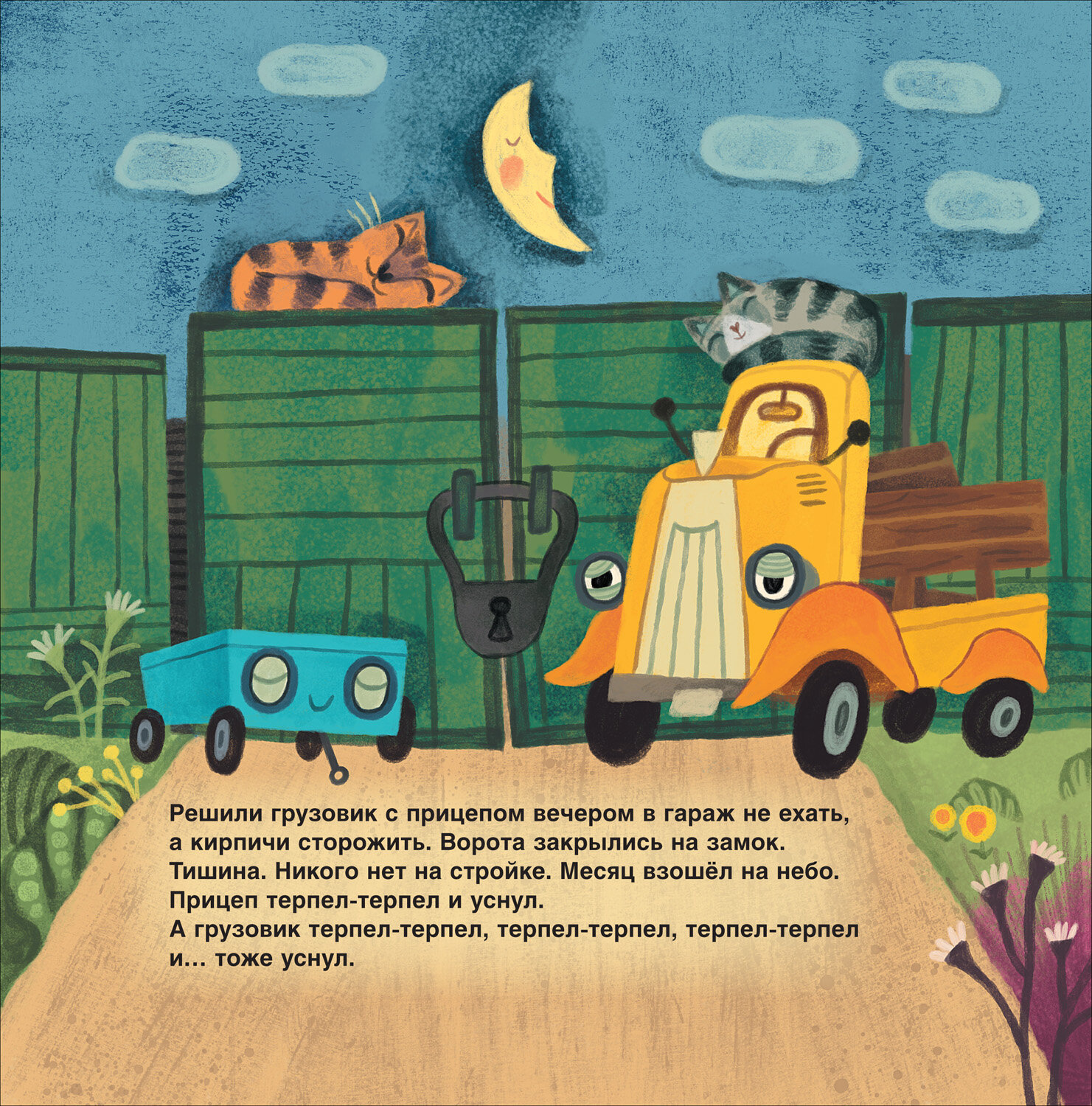 Новая книжка о приключениях любимых героев — грузовика и прицепа!Куда же неразлучные друзья отправятся на этот раз? Конечно, на стройку! А там… Шум, гам, суета: бульдозер рычит, экскаватор грохочет, бетономешалка гудит, строители в касках туда-сюда бегают — все строят дом! Вот только кирпичи куда-то пропали… Грузовик и прицеп, скорее на поиски!