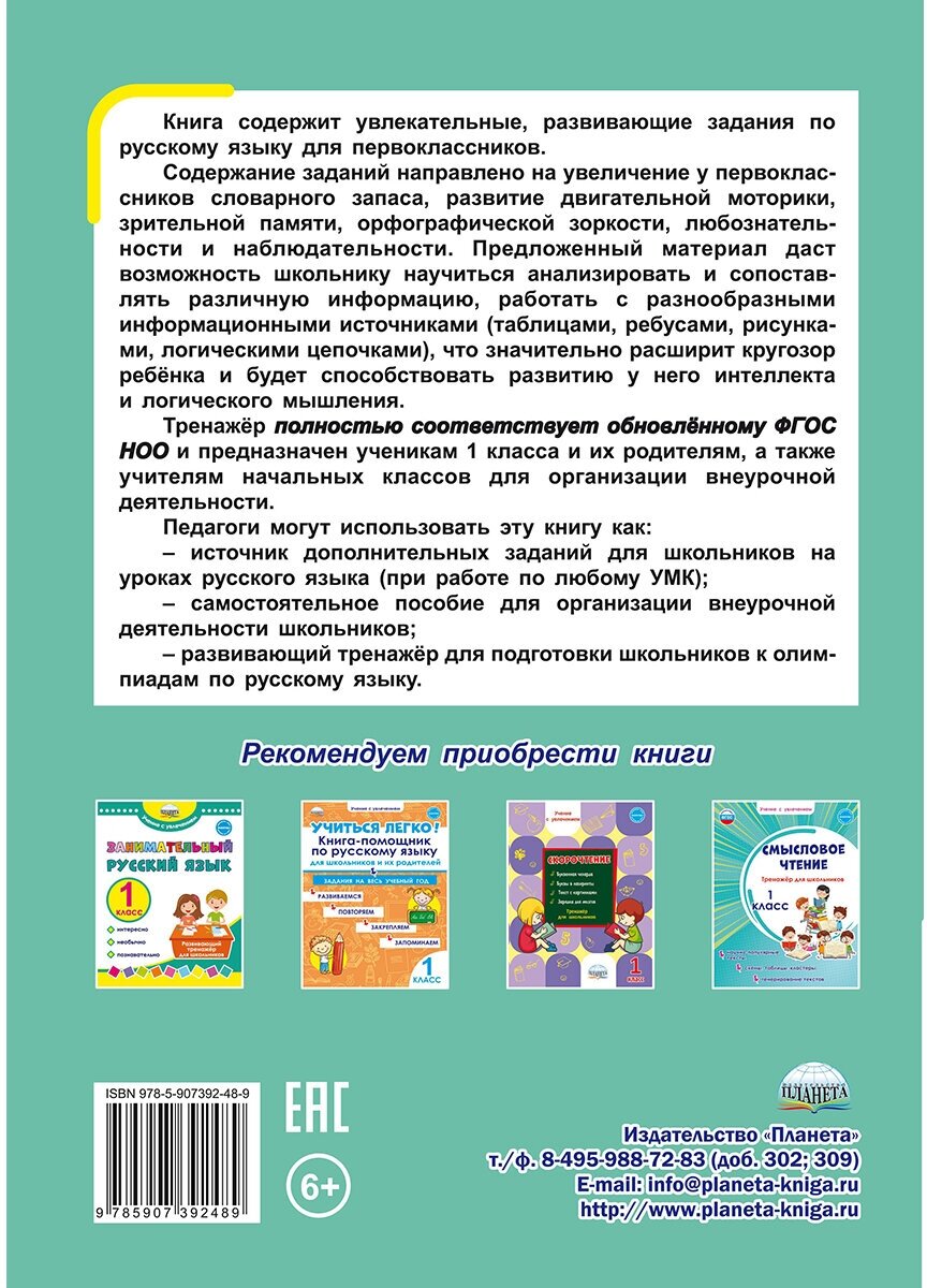 нига содержит увлекательные, развивающие задания по русскому языку для первоклассников.