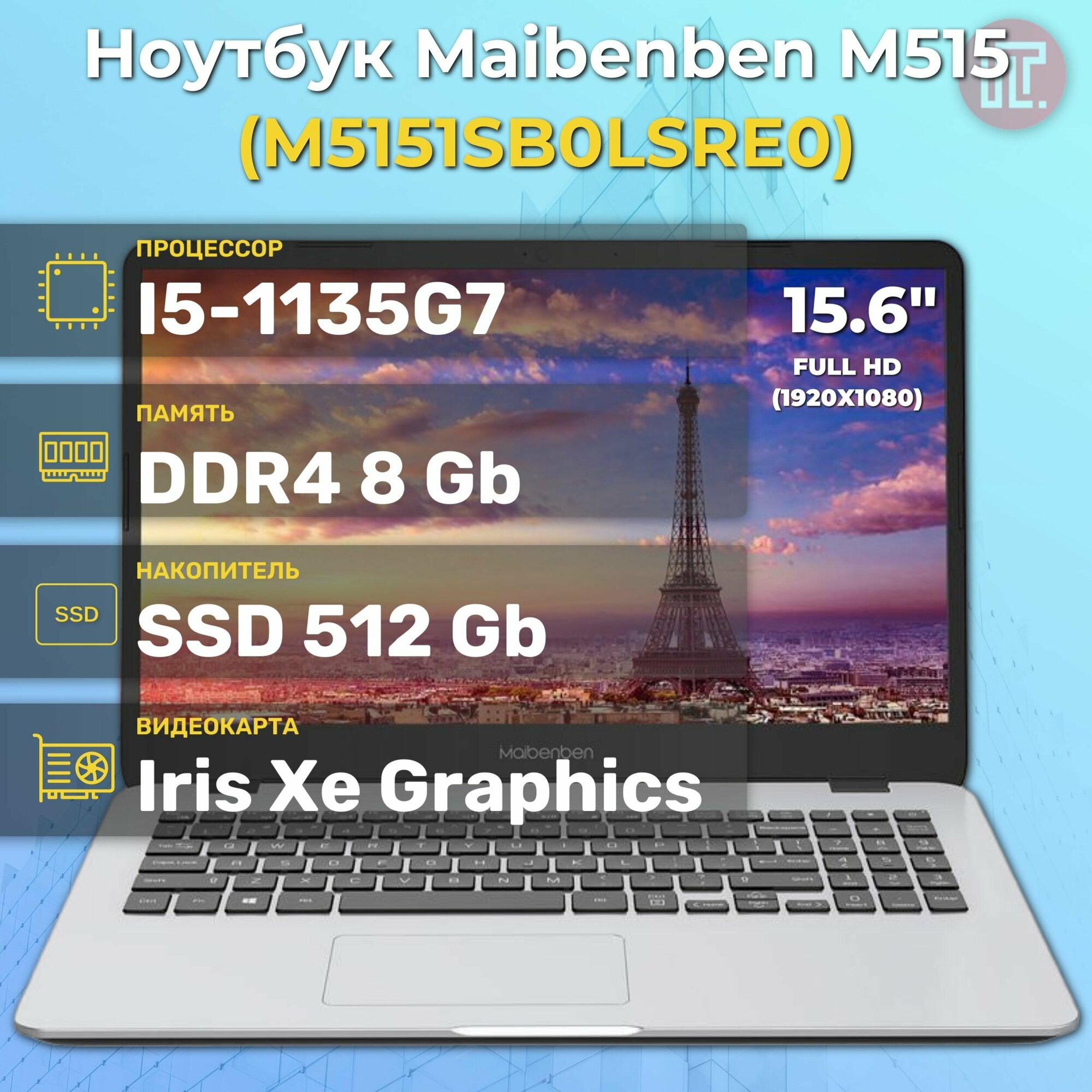 | Полное наименование | MAIBENBEN M515 i5-1135G7 8Gb SSD 512Gb Intel Iris Xe Graphics 15,6 FHD IPS Cam 51,28Вт*ч Linux Серебристый M5151SB0LSRE0 |