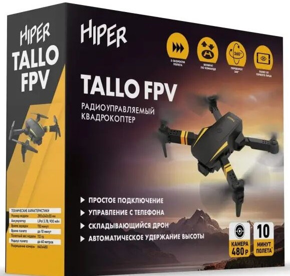 HIPER – Это складной дрон, он подойдет новичкам для обучения и опытным пилотам для развлечения, имеет встроенную FPV видеокамеру 480P, с возможностью ручного регулирования угла наклона камеры. Испытайте свободу полёта от первого лица, установив приложение для IOS и Android. Прямо с планшета или смартфона вы сможете управлять полётом и контролировать фото-видео съёмку. Либо просто закрепите свой смартфон в качестве экрана на пульте ДУ и наблюдайте трансляцию с камеры по WiFi.