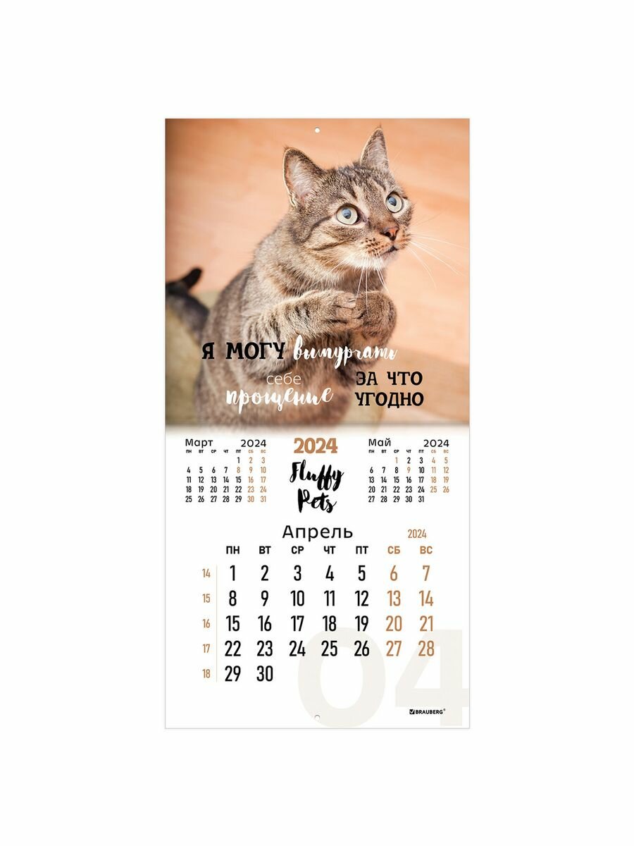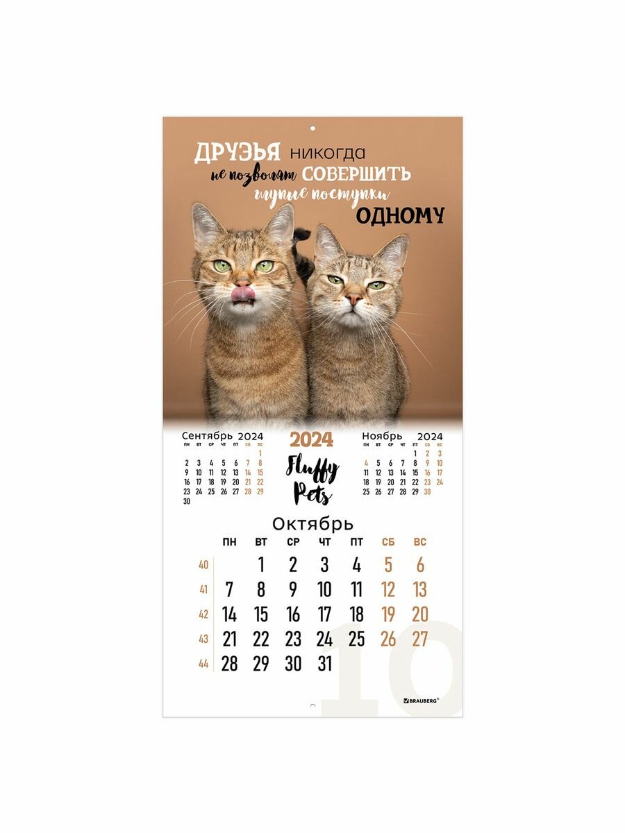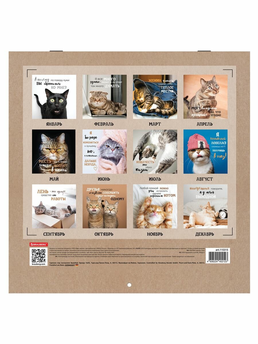 Календарь настенный перекидной на 2024 год Кошечки Brauberg