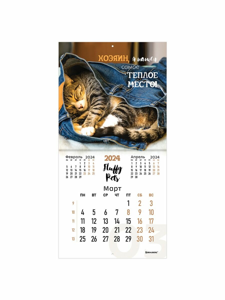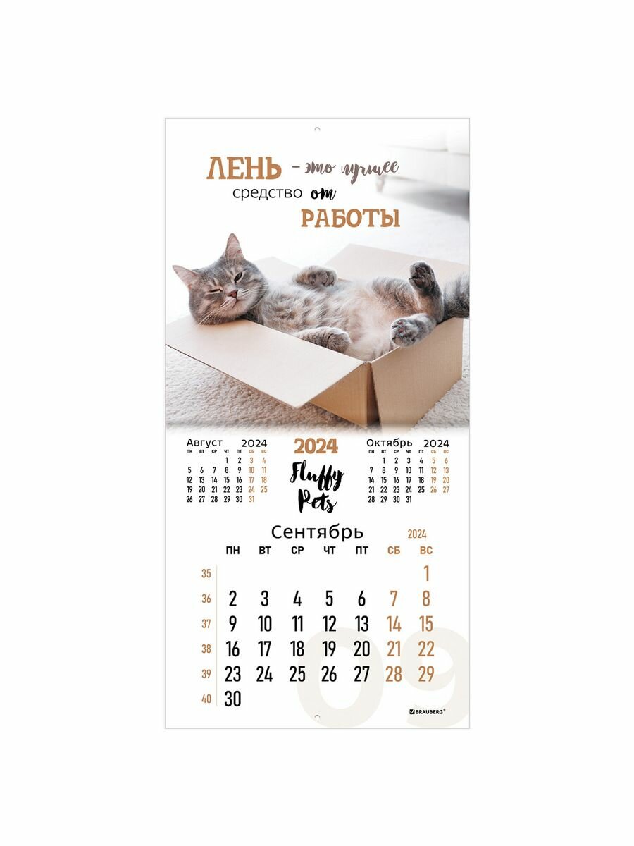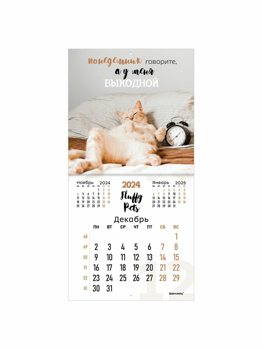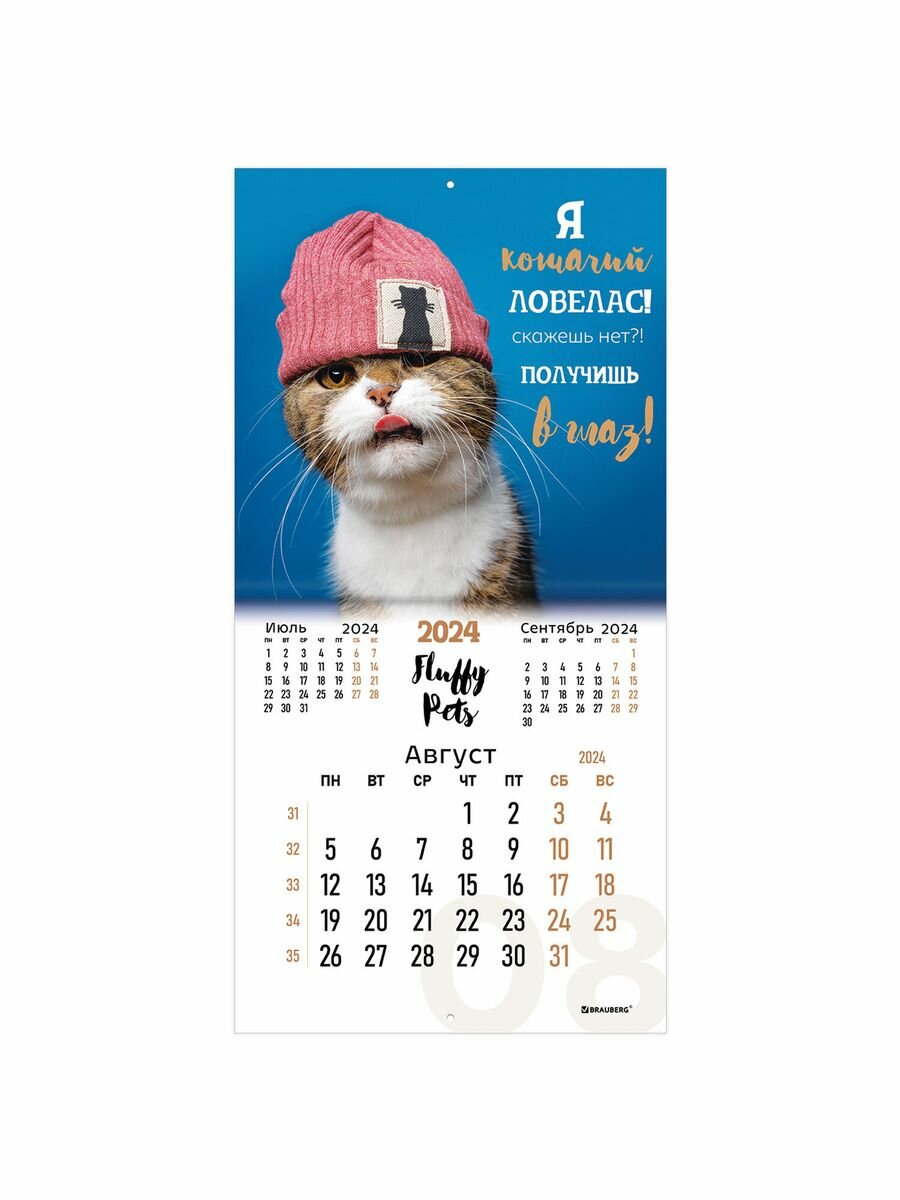 Календарь настенный перекидной на 2024 год Кошечки Brauberg