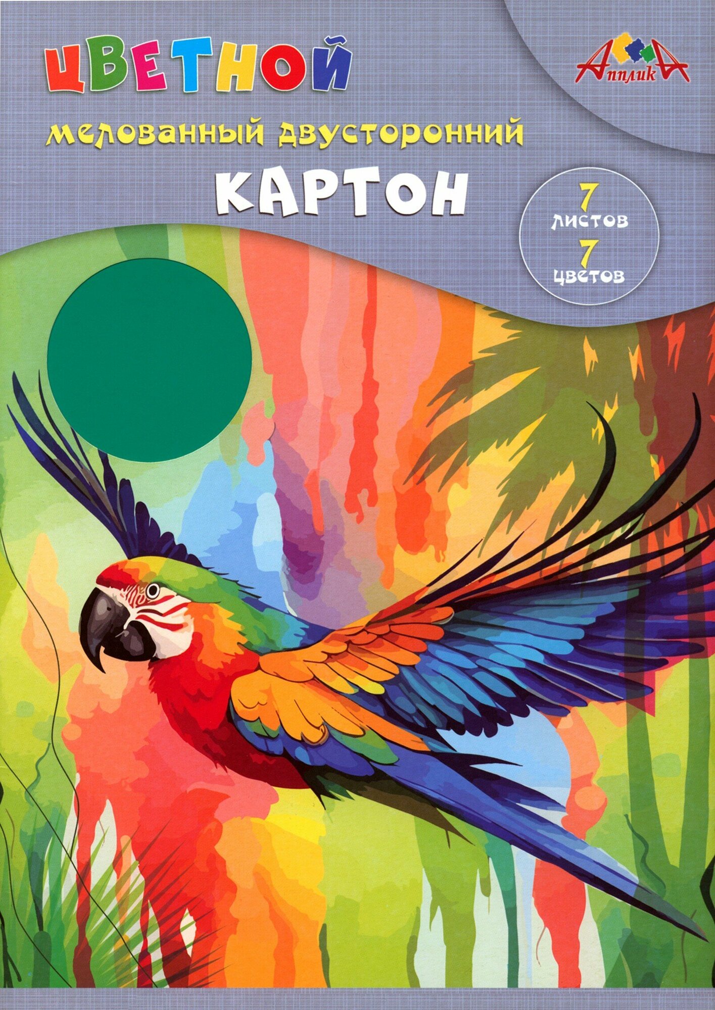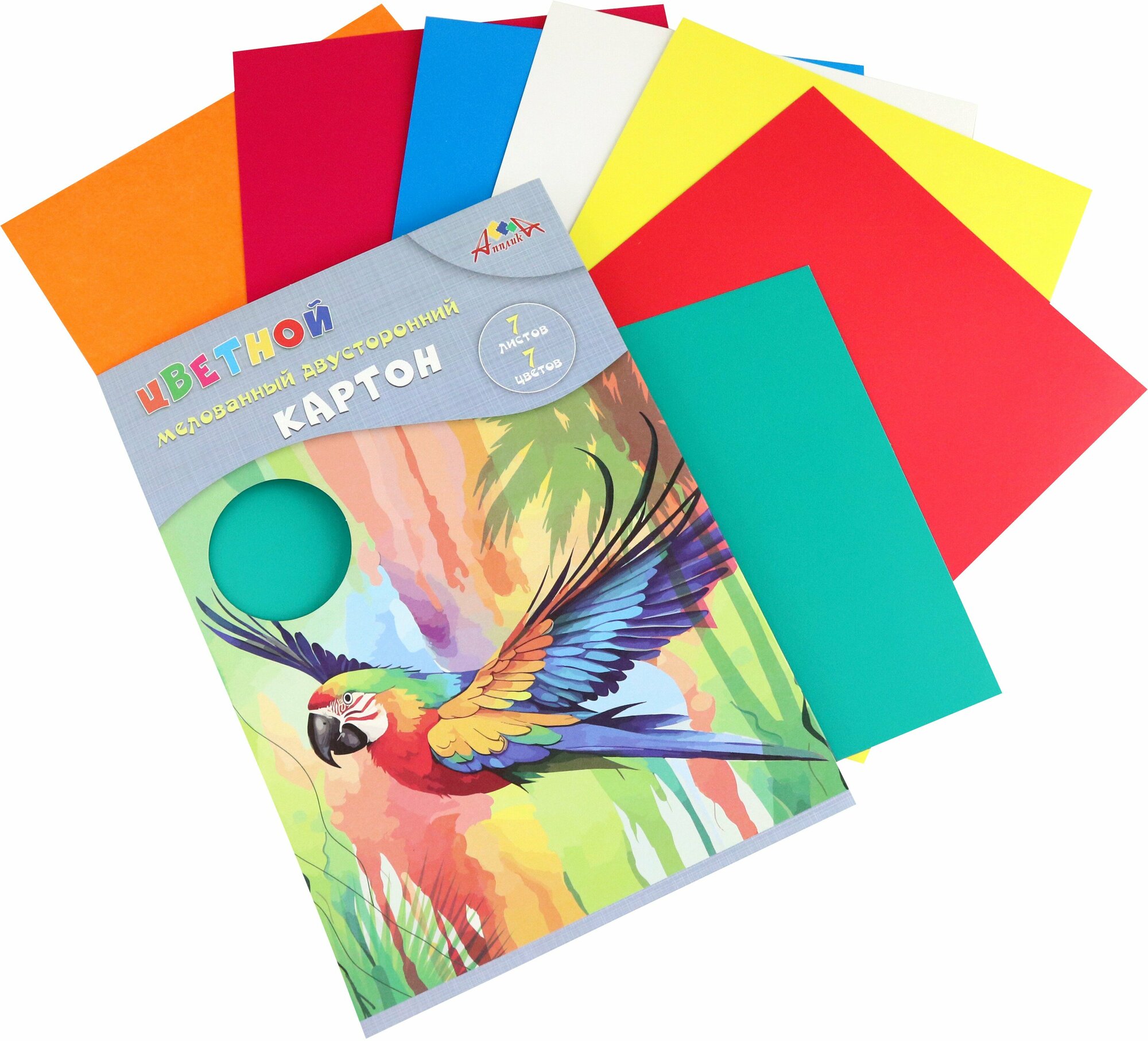 Картон цветной двусторонний Яркий попугай 7 цветов 7 листов АппликА