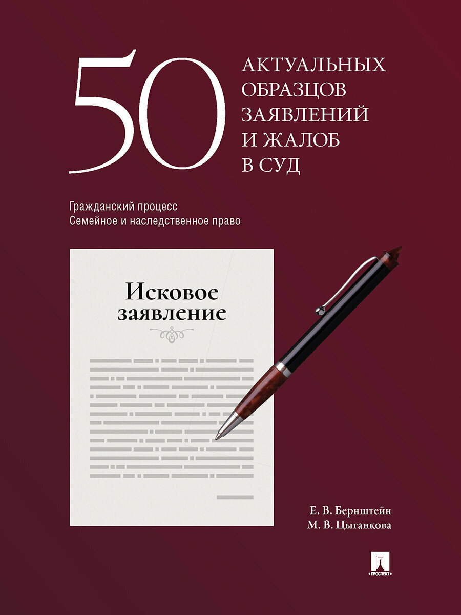 50 актуальных образцов заявлений и жалоб в суд. Гражданский процесс. Семейное и наследственное право (Мария Валентиновна Цыганкова, Елизавета Валерьевна Бернштейн); Проспект, 2025