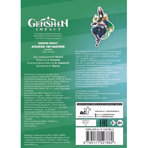 Genshin Impact. Альбом 100 наклеек (зеленый) (Илюхина Е. (ред.)); ИЗДАТЕЛЬСТВО "АСТ", 2023
