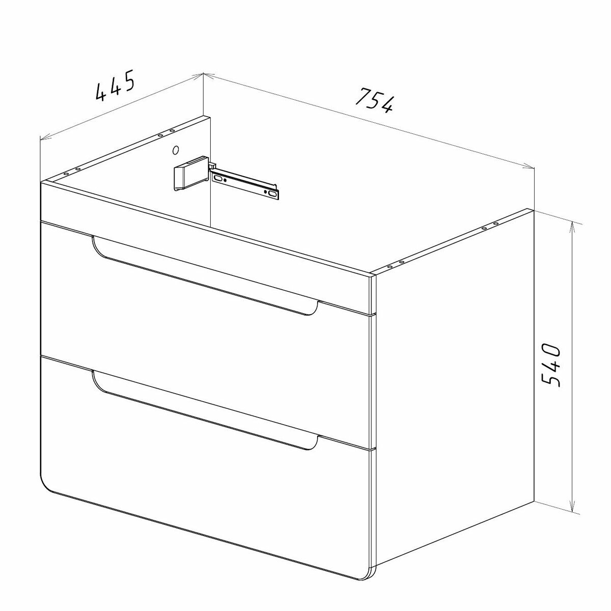 - Габариты корпуса тумбы (ШхВхГ): 754х540х445 мм.