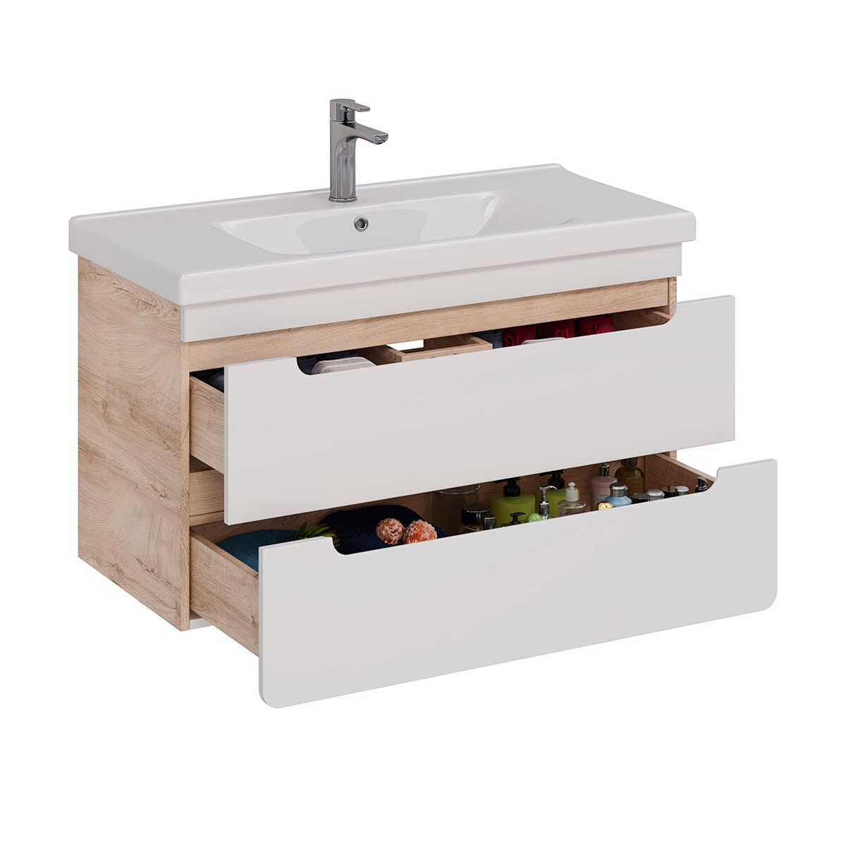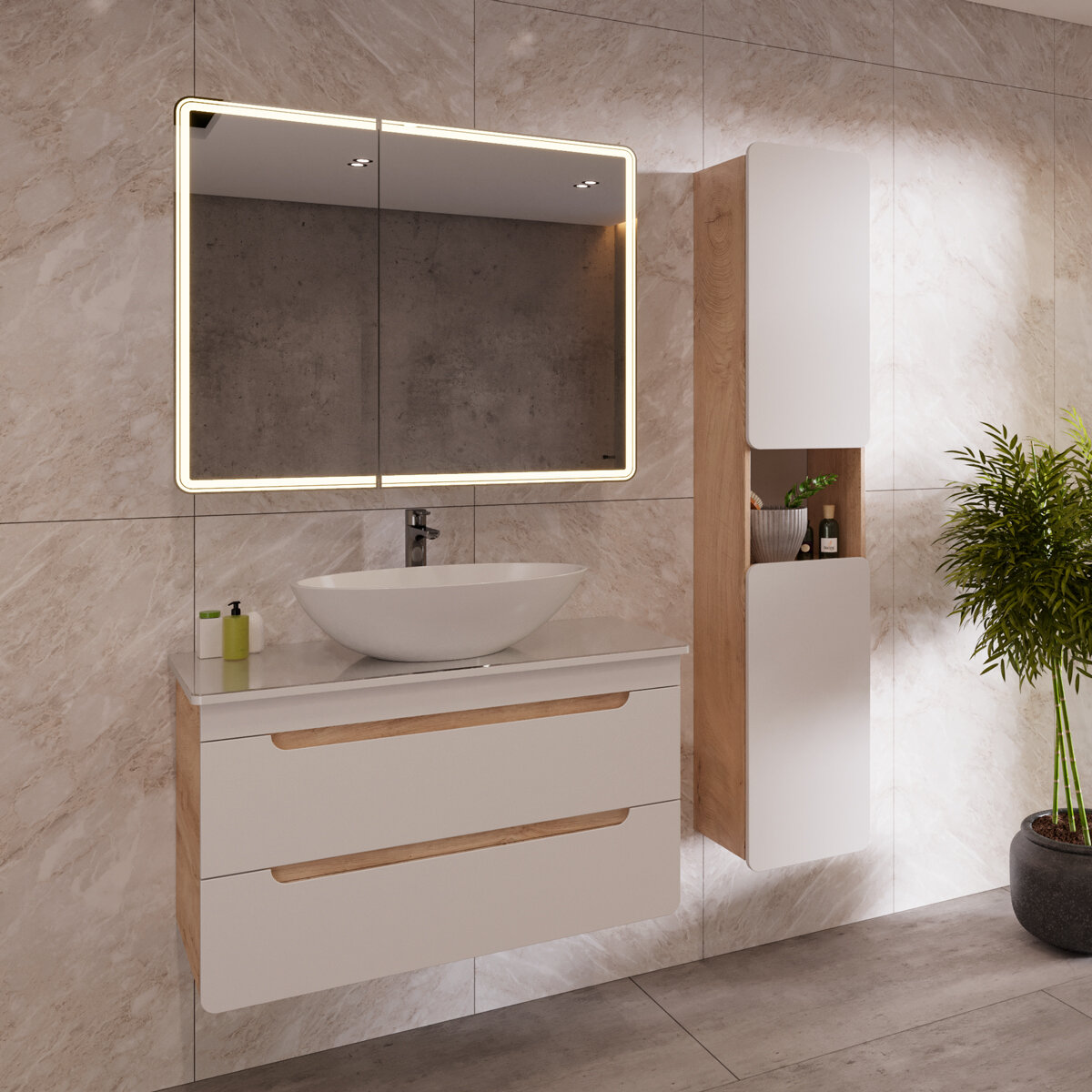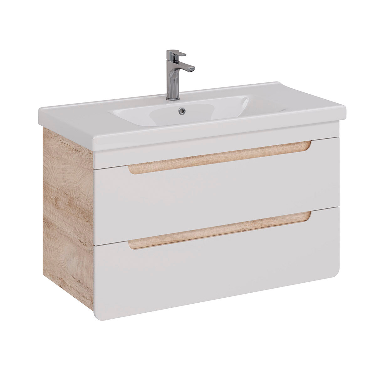 Тумба под раковину Lemark Olivia 100 LM08OL100T подвесная Белый глянец Дуб Кантри
