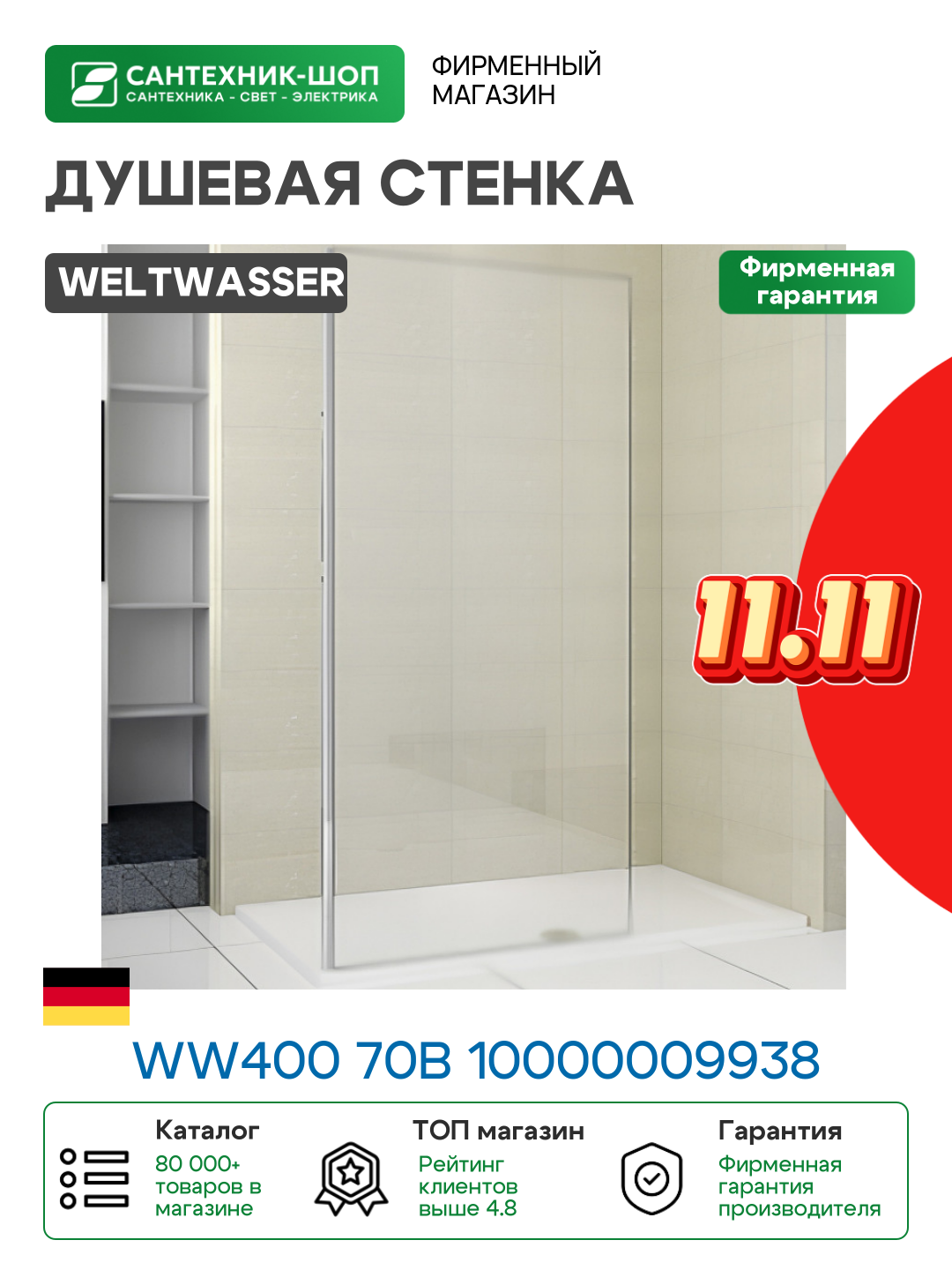 На сегодняшний день товар «Душевая стенка WeltWasser WW400 70B 10000009938 профиль Хром стекло прозрачное» можно купить с кешбеком в 2 магазинах: Santehnika-room, Сантехника Тут
