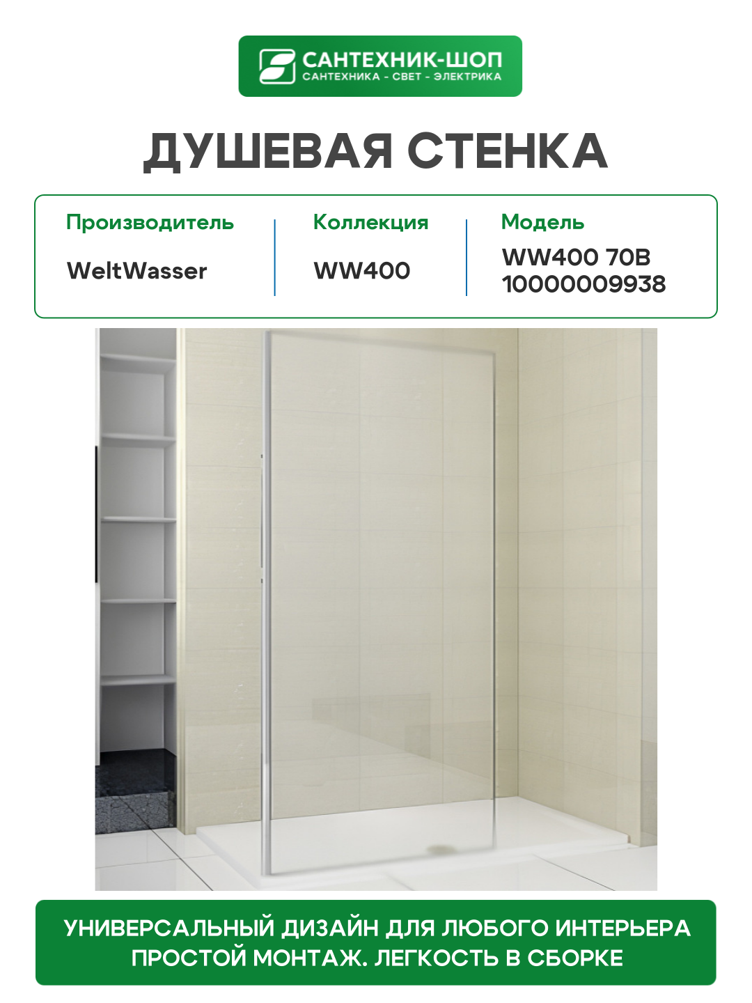 Душевая стенка WeltWasser WW400 70B 10000009938 профиль Хром стекло прозрачное