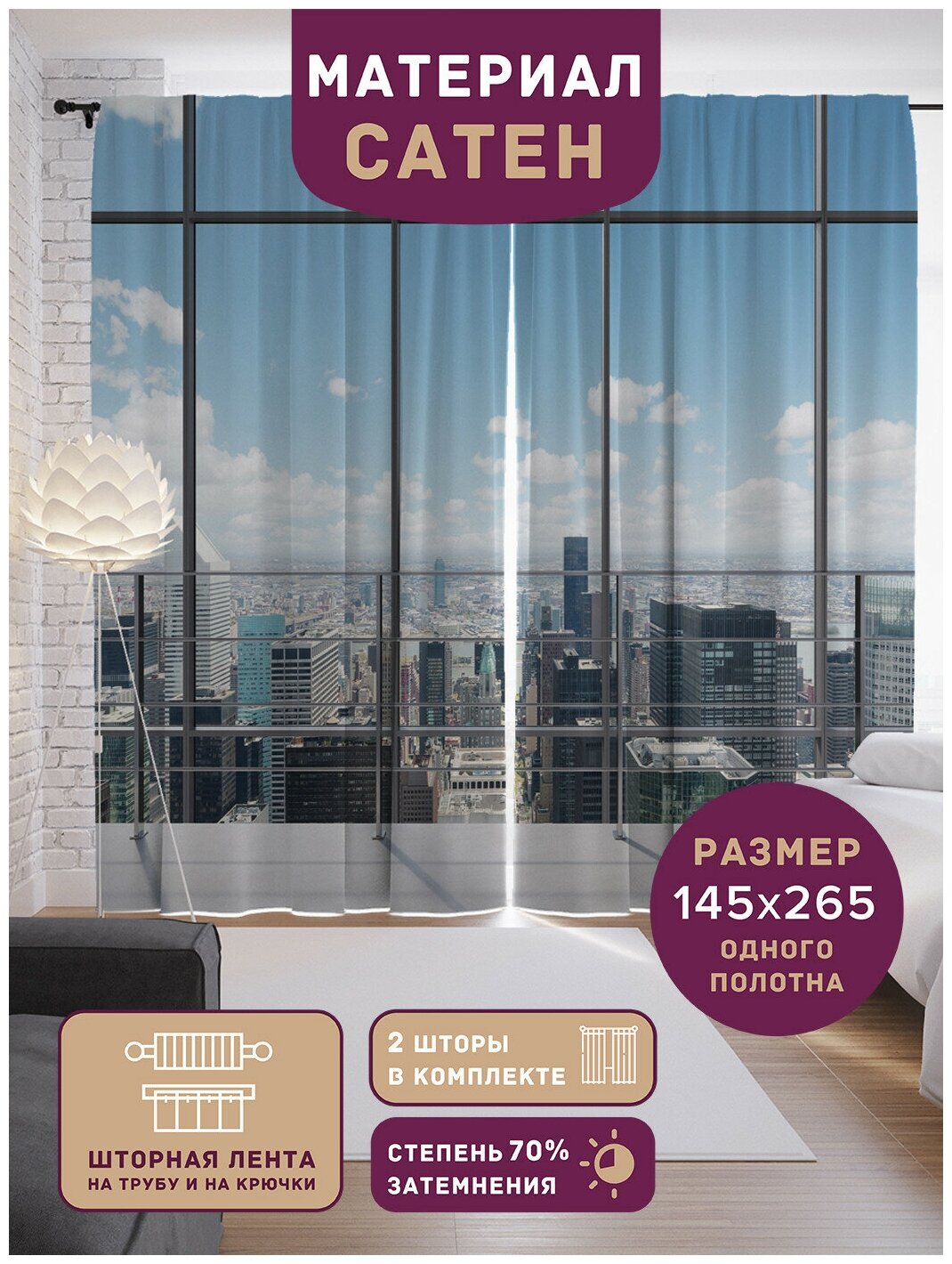 Модель: Шторы с фотопечатью В городском офисе из сатена 290х265 см