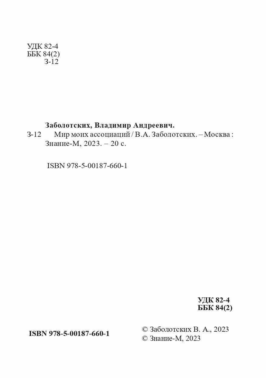 Книга: Мир моих ассоциаций (Владимир Андреевич Заболотских); Издательский центр Логос, 2023