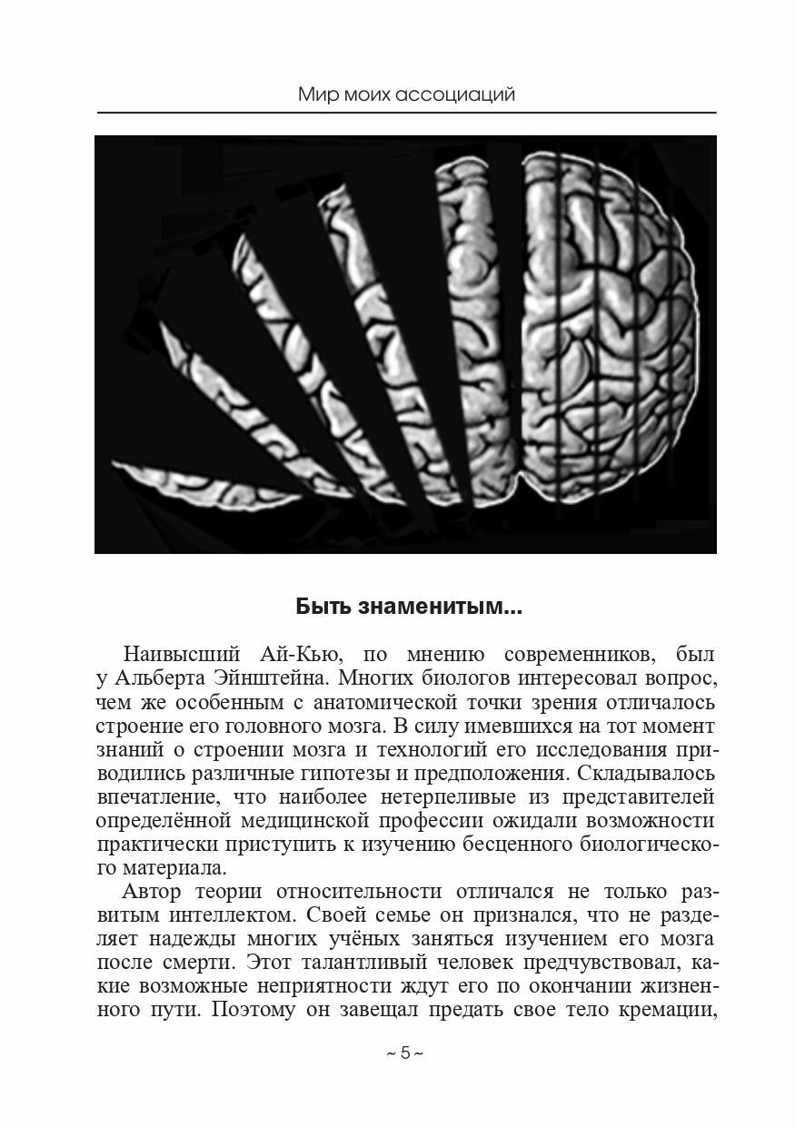 «Мир моих ассоциаций» - произведение, посвященное проблеме развития интеллекта и интуиции в нашей стране, испытывающей в настоящее время большое напряжение финансовых, интеллектуальных, социальных и политических сфер своего существования.