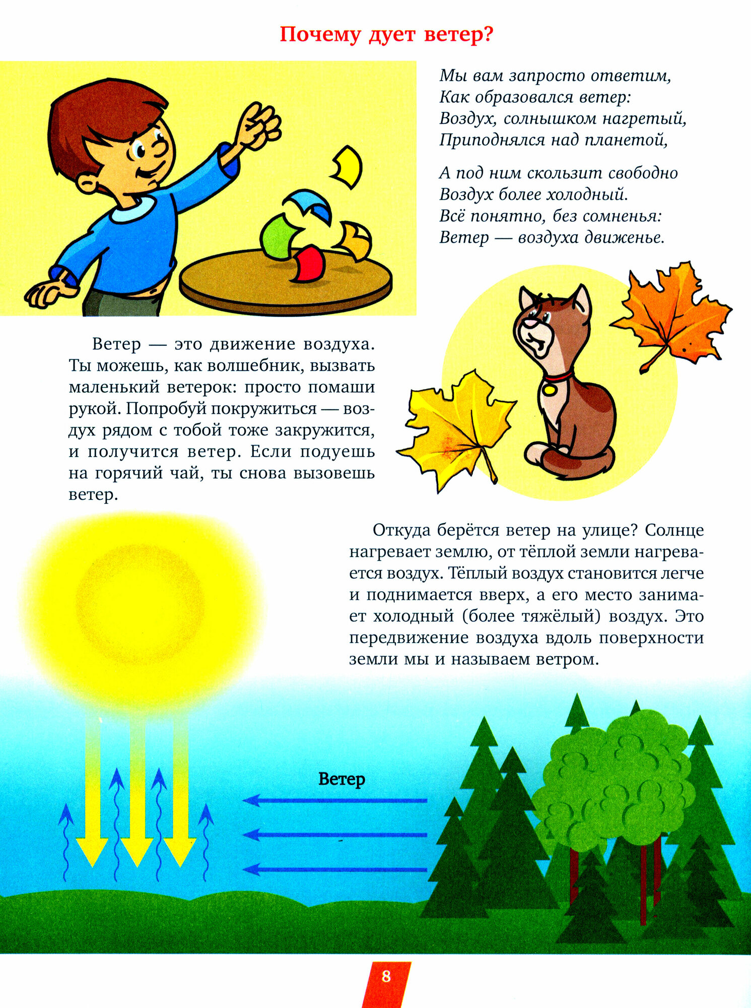 Книга поможет родителям объяснить ребенку, почему дует ветер и идет дождь, откуда берется туман, почему бывает радуга и многое другое.