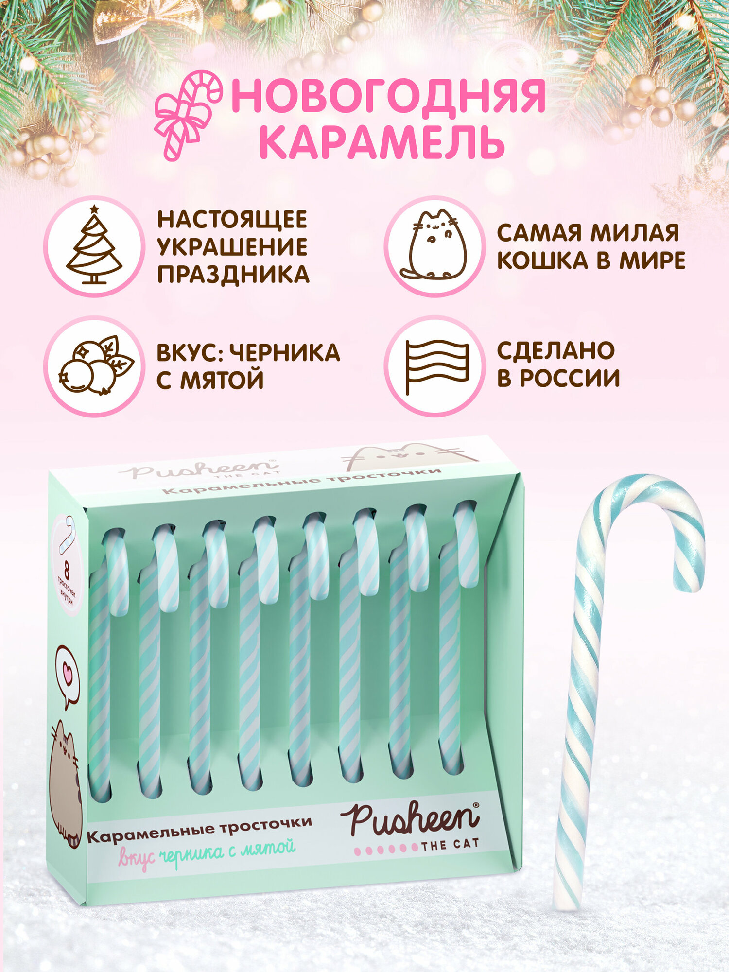 На сегодняшний день товар «Карамель леденцовая Сладкая Сказка Pusheen карамельные тросточки 120 г» можно купить с кешбеком в 1 магазине: Яндекс.Маркет
