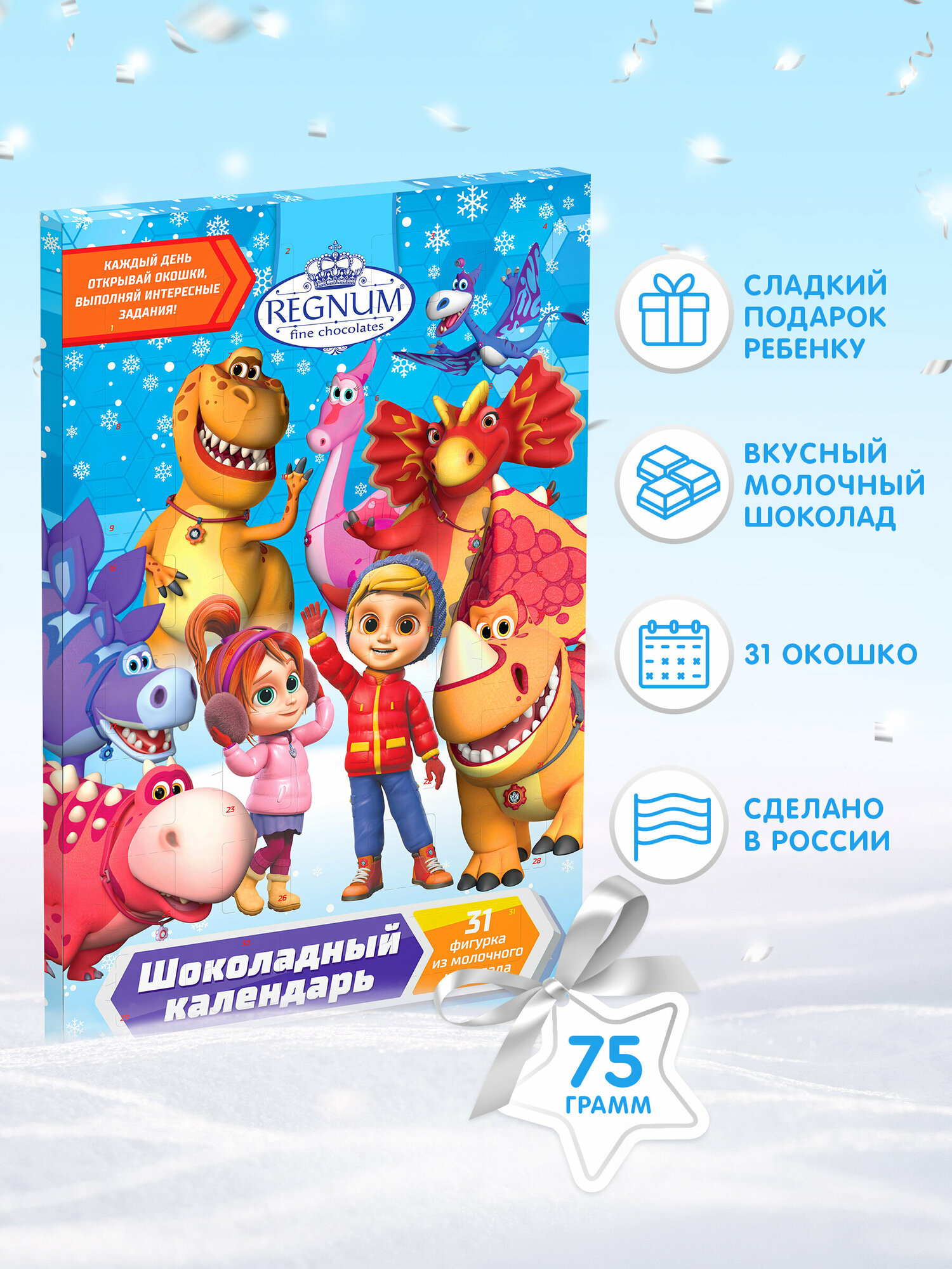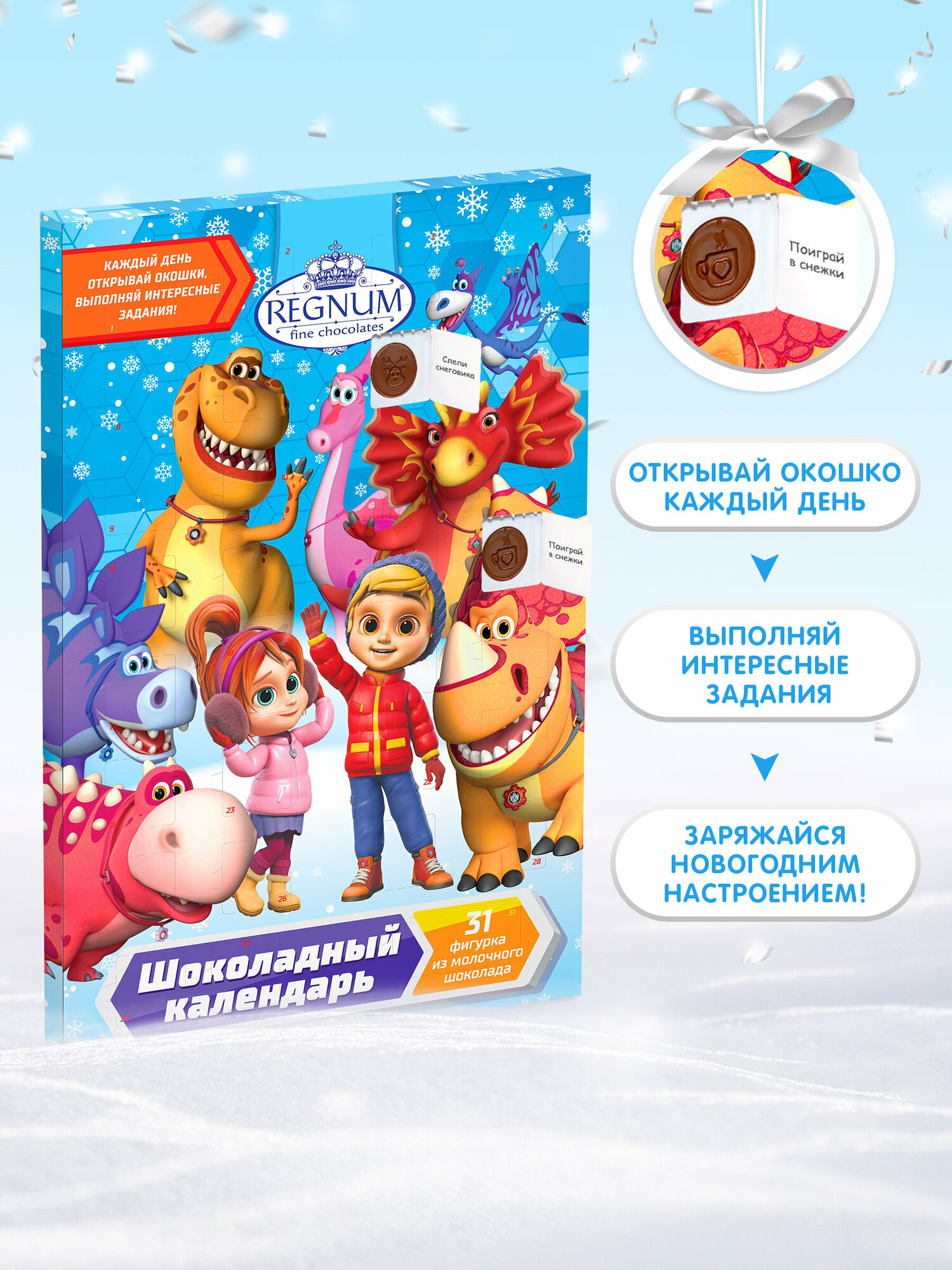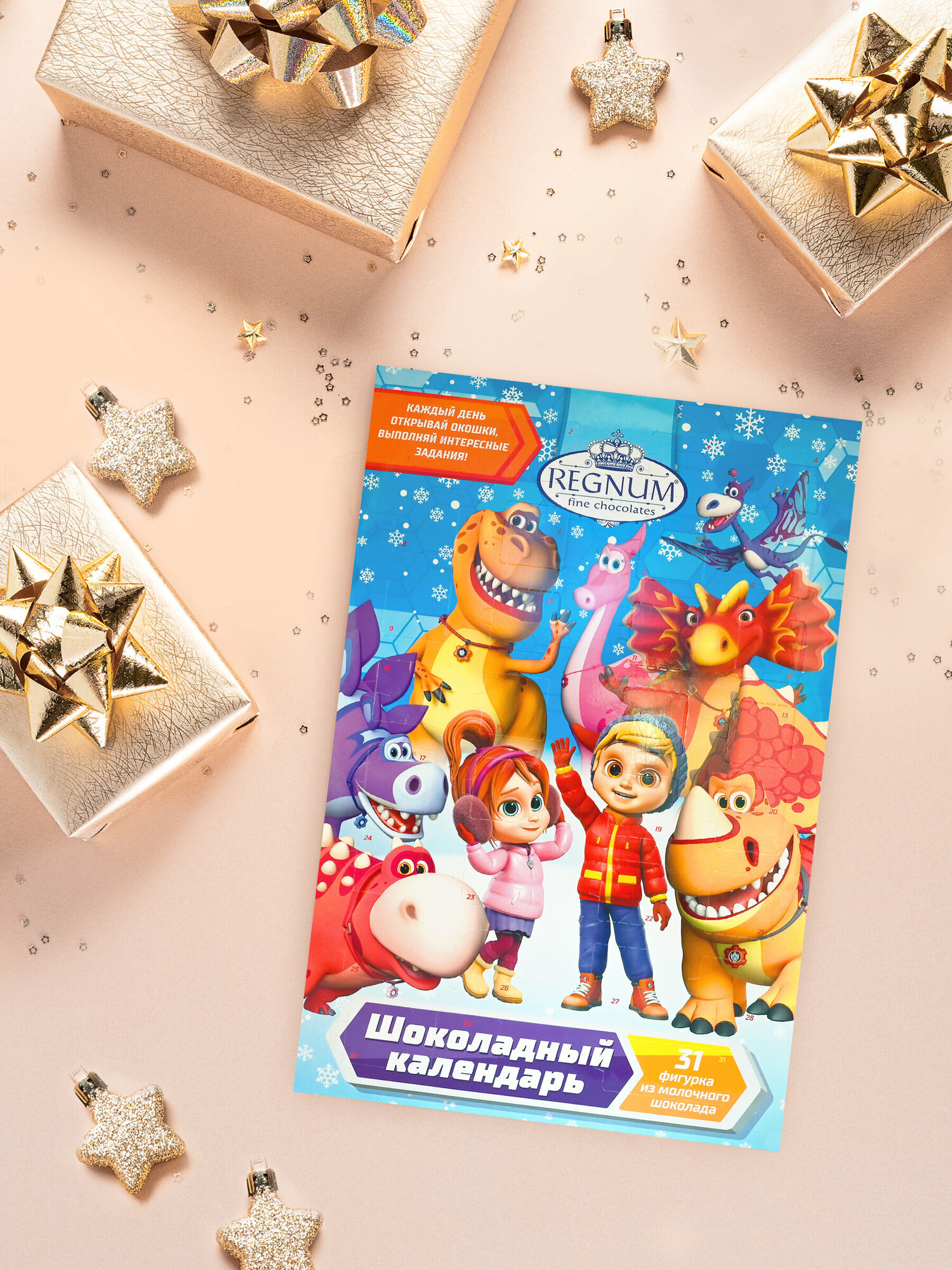 Приближается Новый год время, наполненное душевным теплом, улыбками и, конечно же, подарками, о которых стоит задуматься уже сегодня. Предлагаем вам порадовать своего малыша и подарить ему адвент-календарь Regnum Турбозавры, чтобы ребёнок сам отсчитывал время, оставшееся до Нового года. Продукт представляет собой красочную коробку в виде большой открытки с изображением главных героев из мультсериала. Календарь имеет 31 окошко по количеству дней в декабре. Под каждым из них малыш найдёт шоколадную фигурку и интересное новогоднее задание.