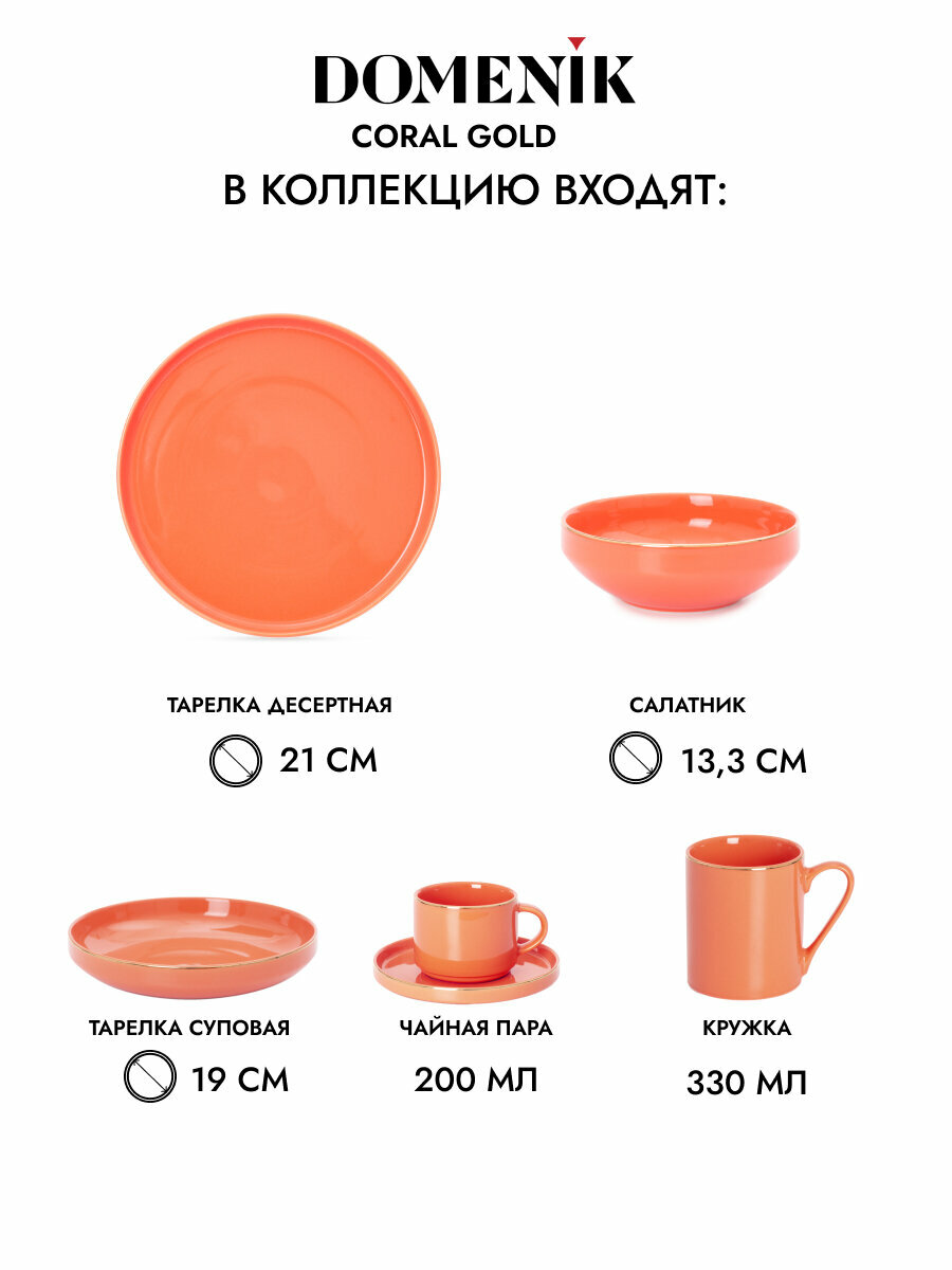 CORAL GOLD — практичный вариант посуды для подачи вторых блюд, закусок, нарезки и некоторых видов десертов. Тарелки изготовлены из фарфора. Материал изделия безопасен при контакте с пищевыми продуктами, не выделяет вредных веществ и долго сохраняет первоначальный вид. Гладкая стеклянная поверхность не впитывает запахи и не окрашивается.