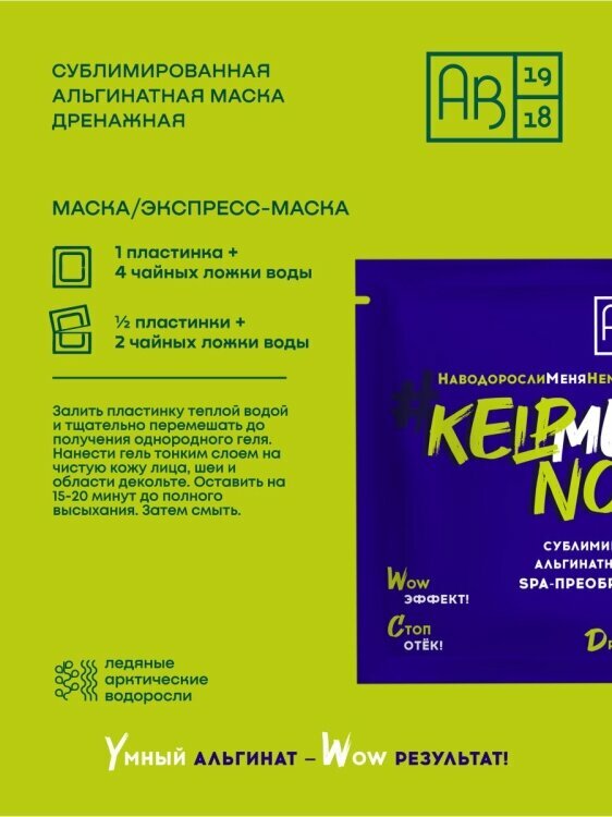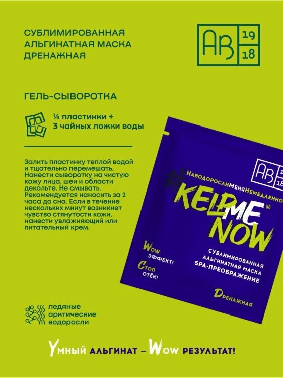 Сублимированная альгинатная маска SPA-ПРЕОБРАЖЕНИЕ #KELPMENOW®дренажная шт. АВ1918