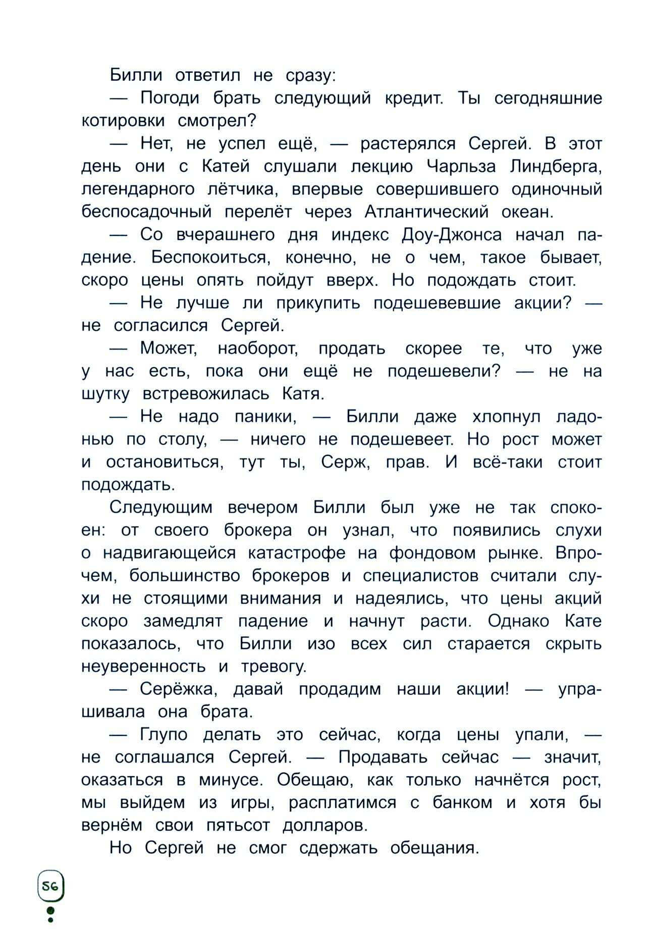 Двойняшки Катя и Серёжа посмотрели телепередачу о людях, зарабатывающих игрой на бирже, и тоже захотели играючи получить кучу денег. Но брат и сестра не забыли, чем закончилась их попытка заняться предпринимательством без необходимых знаний. Волшебный банкомат помогает Кате и Серёже разобраться в том, что такое биржи и какова их роль в экономике. Двойняшки побывают на первой в мире бирже в Брюгге, станут участниками тюльпановой лихорадки, узнают, чем отличается фондовая биржа от товарной или валютной, переживут "чёрный четверг" Великой депрессии, познакомятся с работой крупнейшего российского биржевого холдинга - Московской биржи. Главы, рассказывающие о путешествиях двойняшек во времени и пространстве, дополняются историческими справками, доступными по QR-кодам, а также словарём экономических терминов.