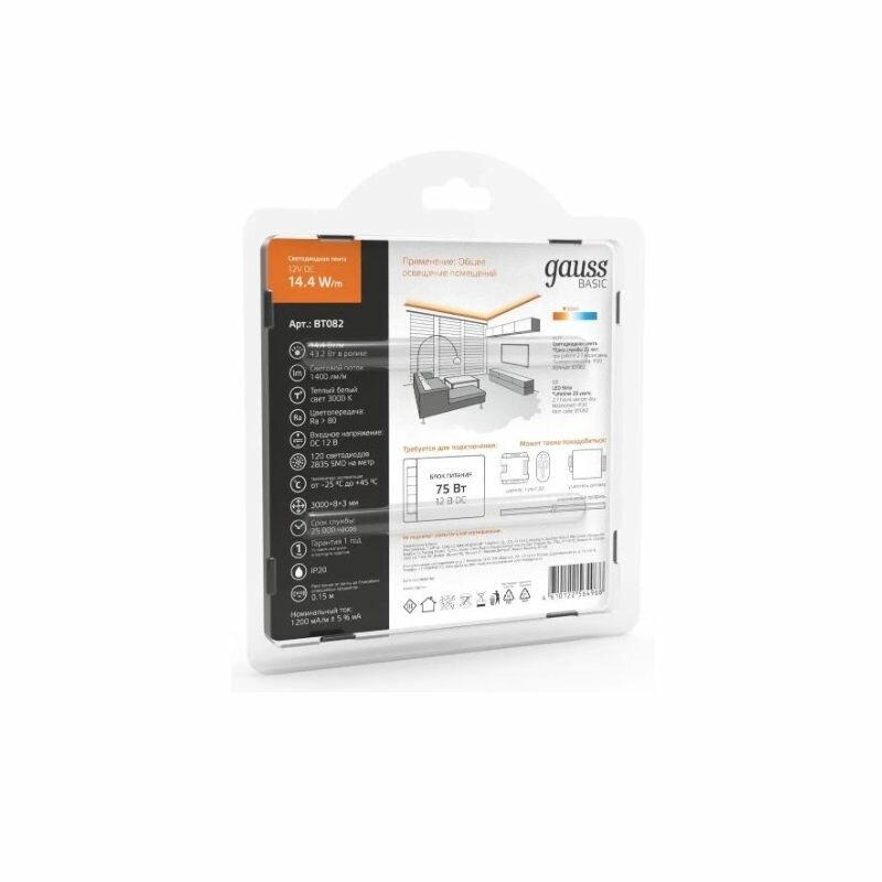 На сегодняшний день товар «Лента Gauss LED BT082 12V 144W 3000K 3 м» можно купить с кешбеком в 1 магазине: Яндекс.Маркет