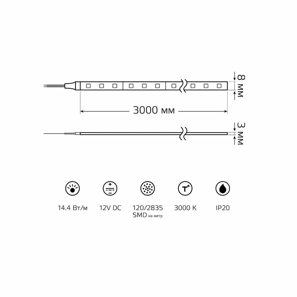 Лента Gauss LED BT082 12V 144W 3000K 3 м