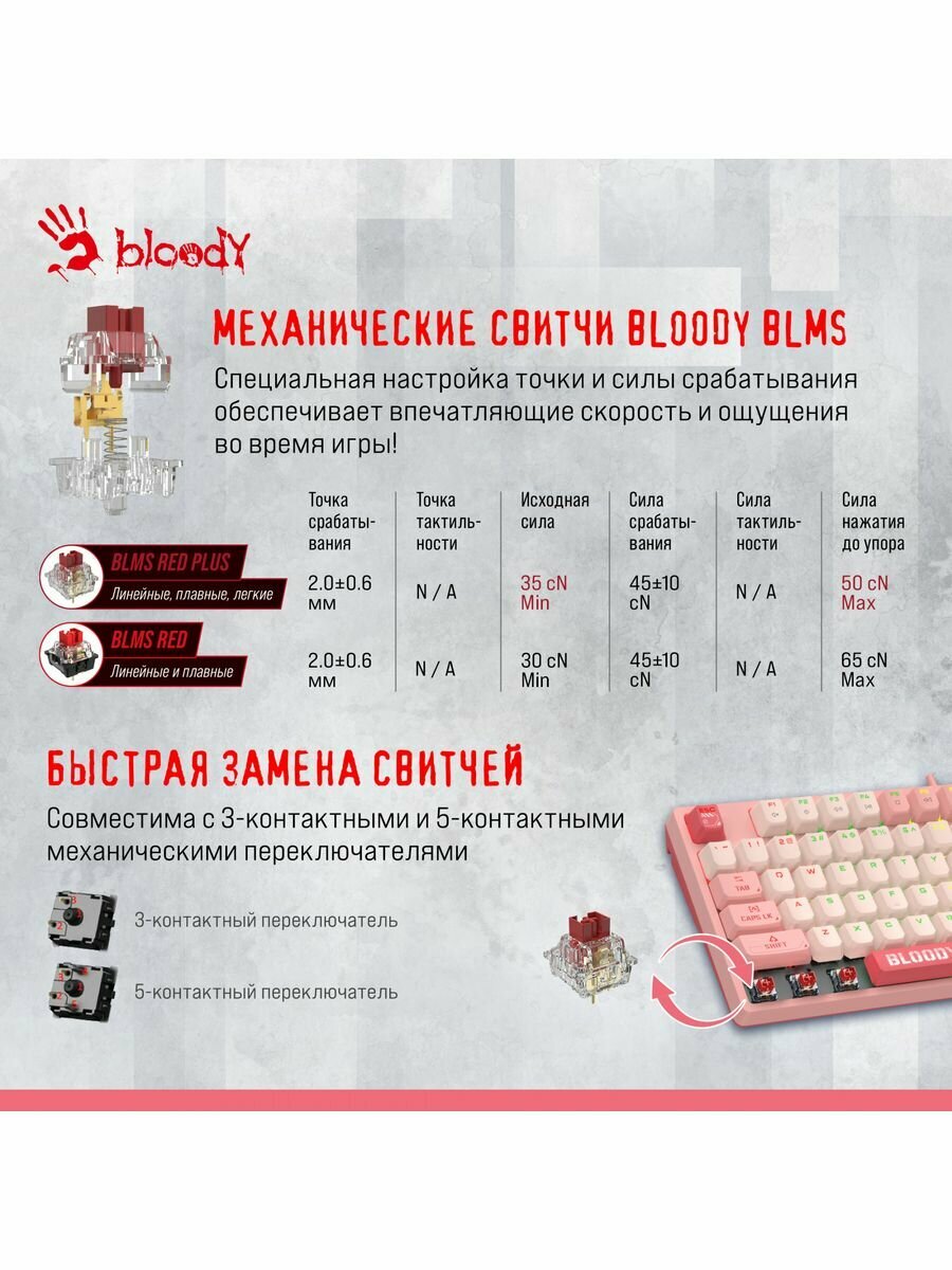 Клавиатура A4TECH Bloody S87 Energy, USB, розовый [s87 usb energy pink]