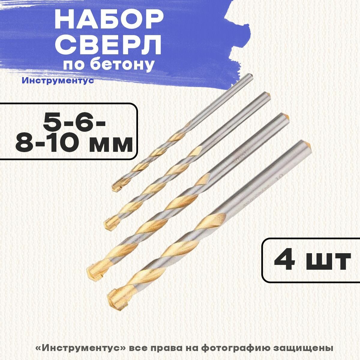 Набор сверл Matrix Golden Line размером 5-6-8-10 мм применяется как сменная оснастка на дрелях. За счет агрессивной формы заточки его можно использовать в режиме ударного сверления. Набор предназначен для работы с твердыми материалами: бетоном, кирпичом и другими. Преимущества: Стальные сверла (марка 40X) отличаются высокой прочностью и надежностью; Пластина из твердого сплава ВК8 обеспечивает высокий ресурс оснастки; Канавка с оксидным покрытием меньше подвержена нагреву, трению и лучше отводит шлам.