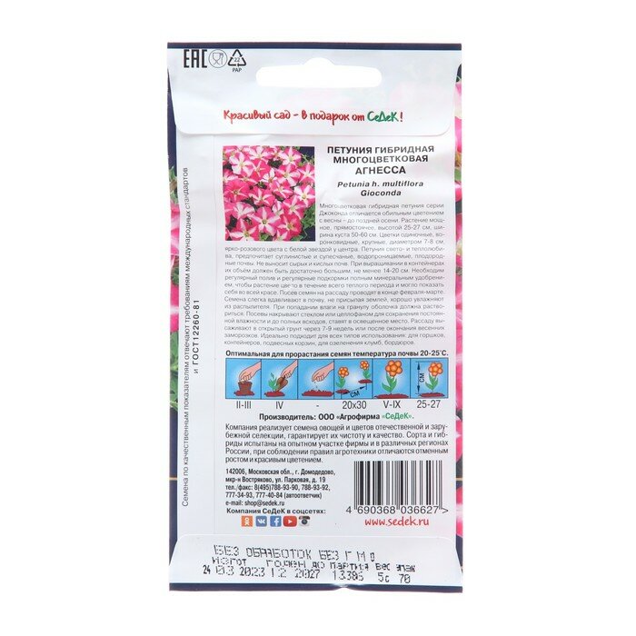 Сервис сравнения цен СкидкаГИД предлагает сравнить цены на товар «Семена СеДеК ПетунияАгнессагибридная»