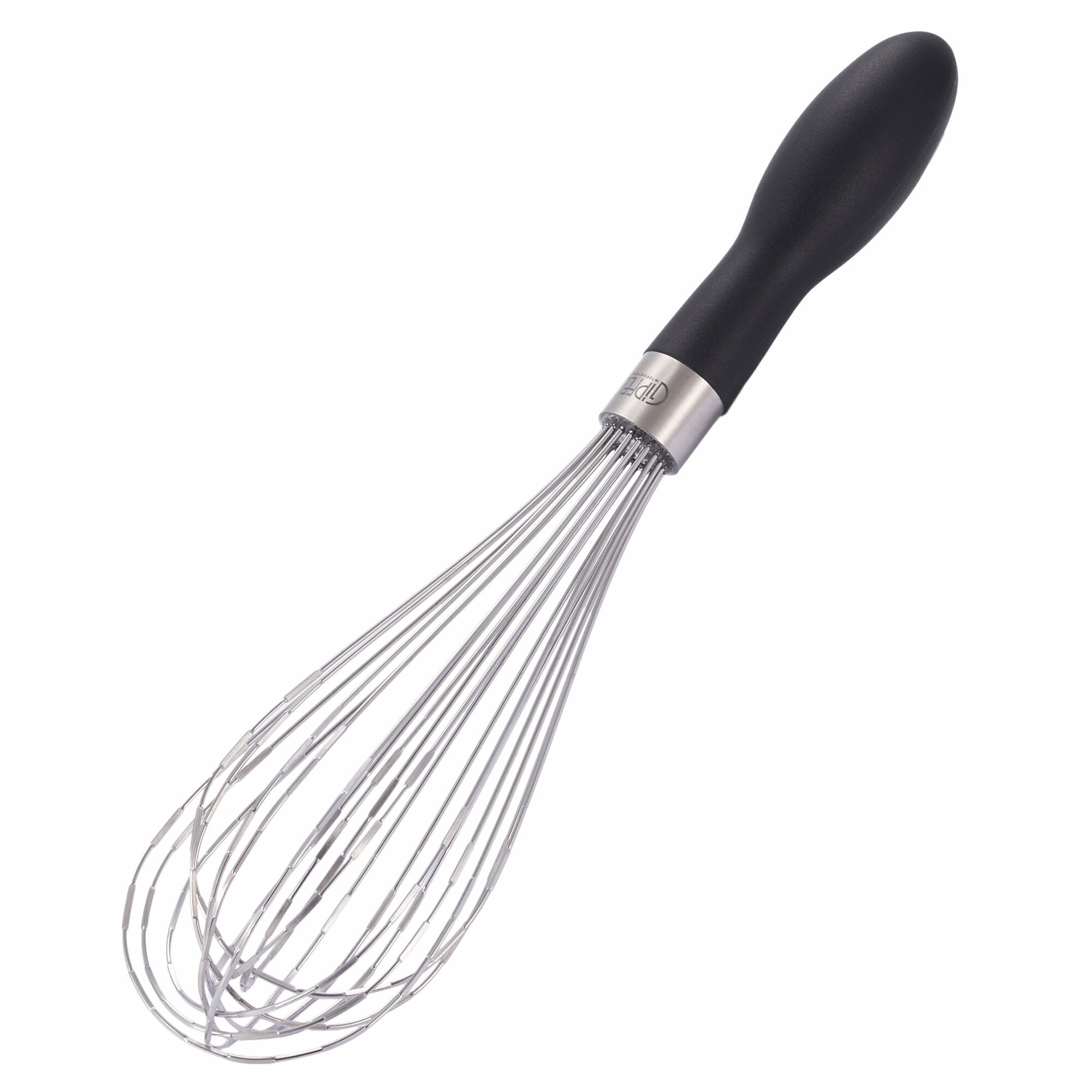 Венчик из нержавеющей стали является наиболее долговечным и обеспечивает наибольшую мощность взбивания. Особая структура спиц венчика делает процесс взбивания более легким.