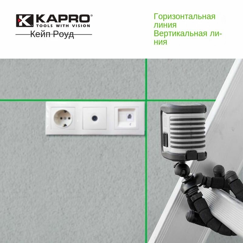 Лазерный уровень Kapro 842G может использоваться при выравнивании стен, полов и потолков, монтаже напольных покрытий, поклейке обоев, установке дверных и оконных коробок, монтаже подвесной мебели и декора, электромонтажных работах. Резьба 1/4" позволяет установить прибор на штатив. Яркий зеленый луч хорошо виден в любых условиях