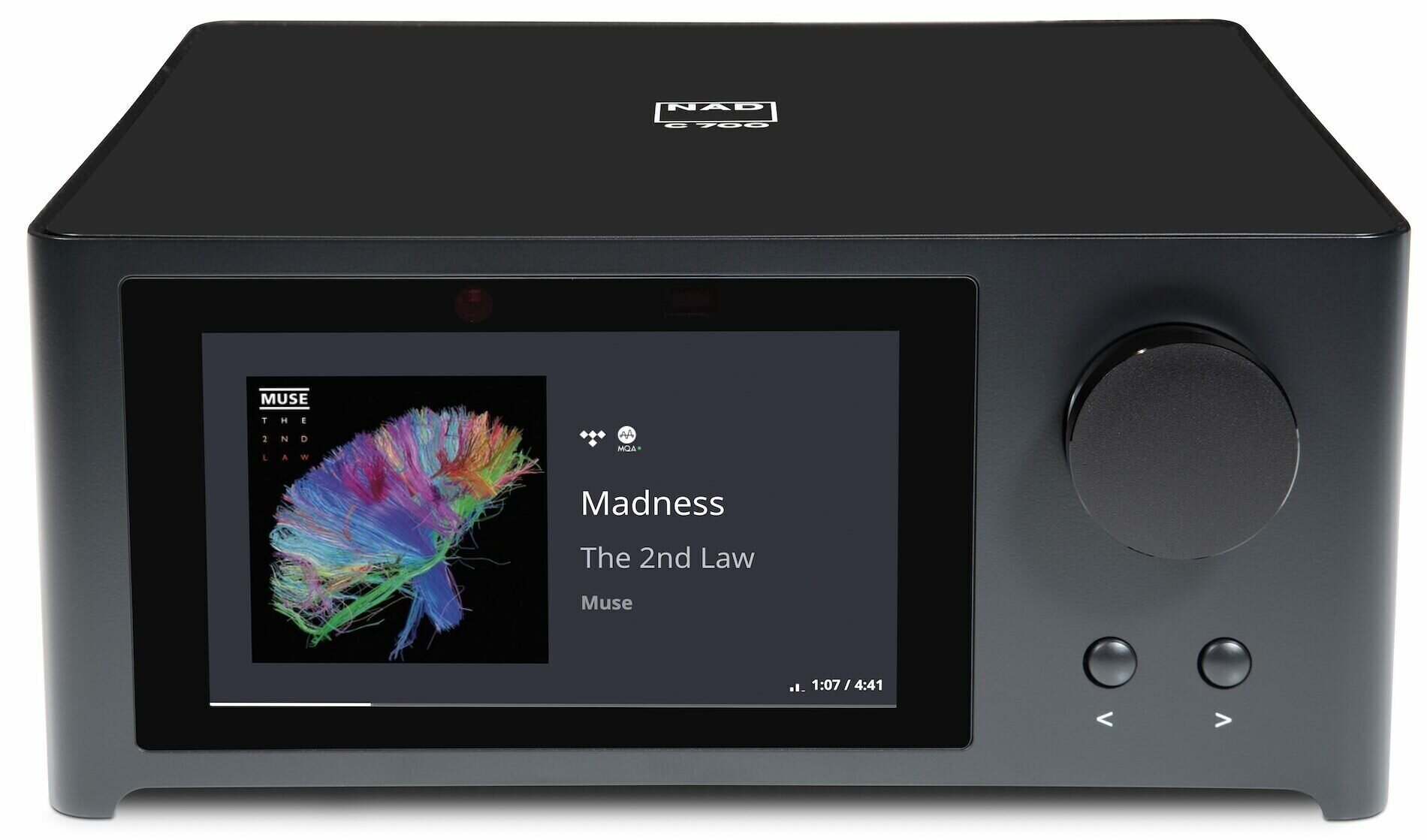 Благодаря элегантному минималистичному дизайну и материалам премиум-класса NAD понравится, как в слуховом, так и в визуальном плане даже самым требовательным слушателям. Усилитель NAD заключен в прочный алюминиевый корпус с гладкой стеклянной передней панелью и 5-дюймовым цветным дисплеем высокой четкости, на котором отображаются обложки альбомов, статус треков и системные настройки. С помощью цветного дисплея NAD можно быстро и удобно настраивать параметры усилителя с дополнительным преимуществом, заключающимся в возможности запоминания команд с любого ранее существовавшего пульта дистанционного управления.