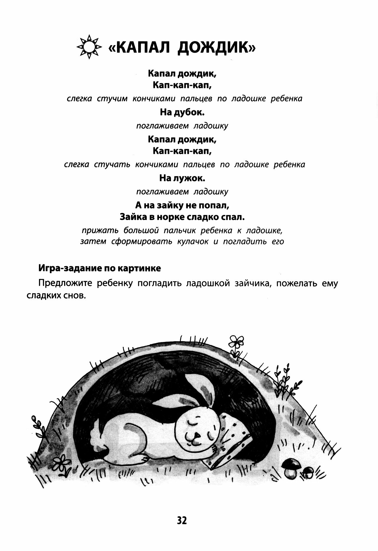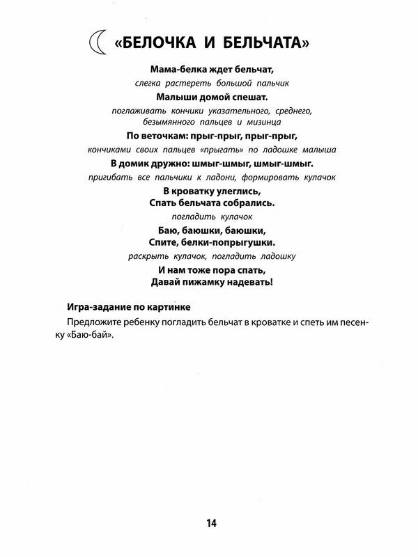 В книге собран практический материал, который поможет взрослому сформировать у малыша 2-4 лет предпосылки "сонного торможения". Предлагаемые игры сочетают в себе расслабляющий массаж, элементы пальчиковой гимнастики в сопровождении коротких стихотворений. Данный игровой материал рекомендуется использовать как мини-ритуалы перед дневным или ночным сном ребенка, чтобы сформировать у него позитивное отношение к этому режимному моменту.