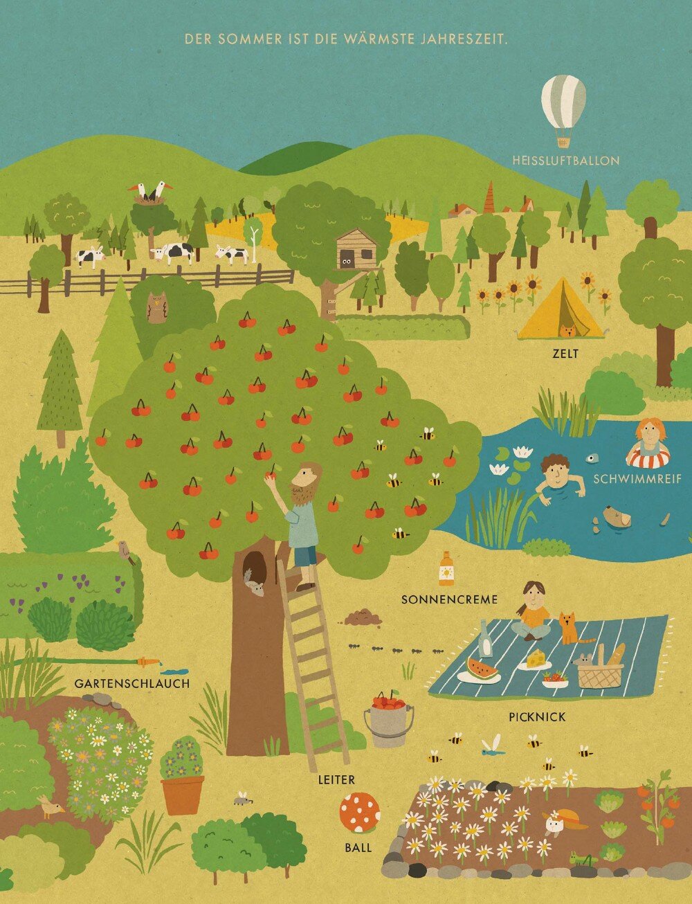 Im Fruhlingsgrun beginnen die Vogel mit dem Nestbau und man kann durch Pfutzen springen. Dann wird es endlich richtig warm und alles trifft sich am See zum Schwimmen oder Eis essen – der Sommer ist da. Im Herbst brechen die Zugvogel auf, der Igel sucht einen Platz zum Winterschlaf und das Eichhornchen versteckt Nusse. Und wenn der Winter kommt, packen wir uns dick ein und nichts wie raus zum Schneemannbauen oder Eislaufen! Im Bewusstsein fur Umweltschutz und Nachhaltigkeit, mit Okofarben auf Recyclingpapier gedruckt: das ist unser 100% Naturbuch.