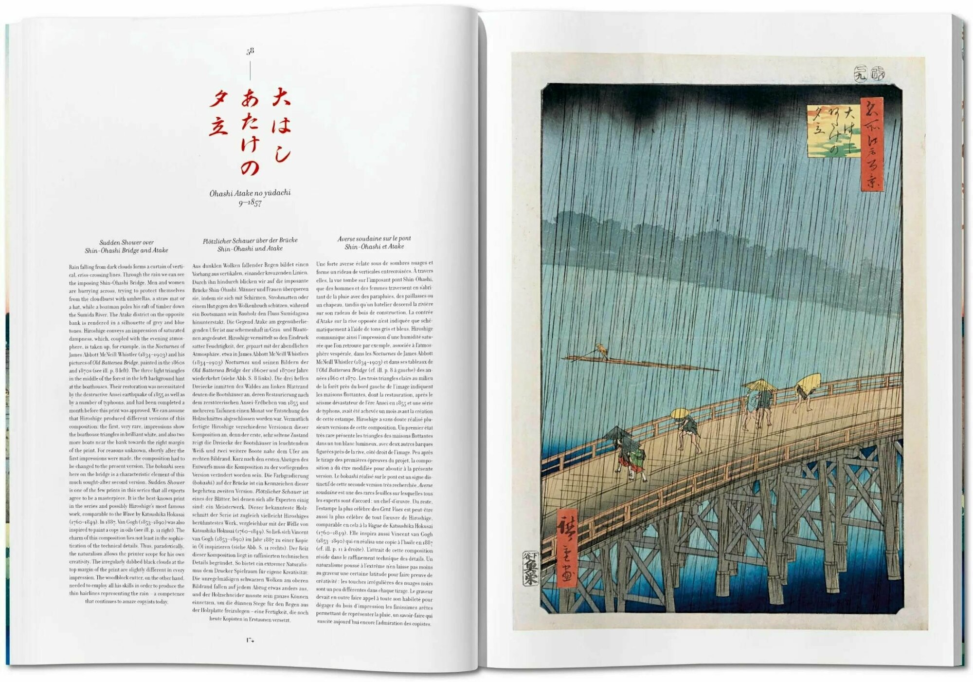 This reprint, bound in the traditional Japanese fashion, is made from one of the finest complete original sets of woodblock prints belonging to the Ota Memorial Museum of Art in Tokyo. It pairs each of the 120 illustrations with a description, allowing readers to immerse themselves in these beautiful, vibrant vistas that became paradigms of Japonisme and inspired Impressionist, Post-Impressionist and Art Nouveau artists alike, from Vincent van Gogh to James McNeill Whistler.