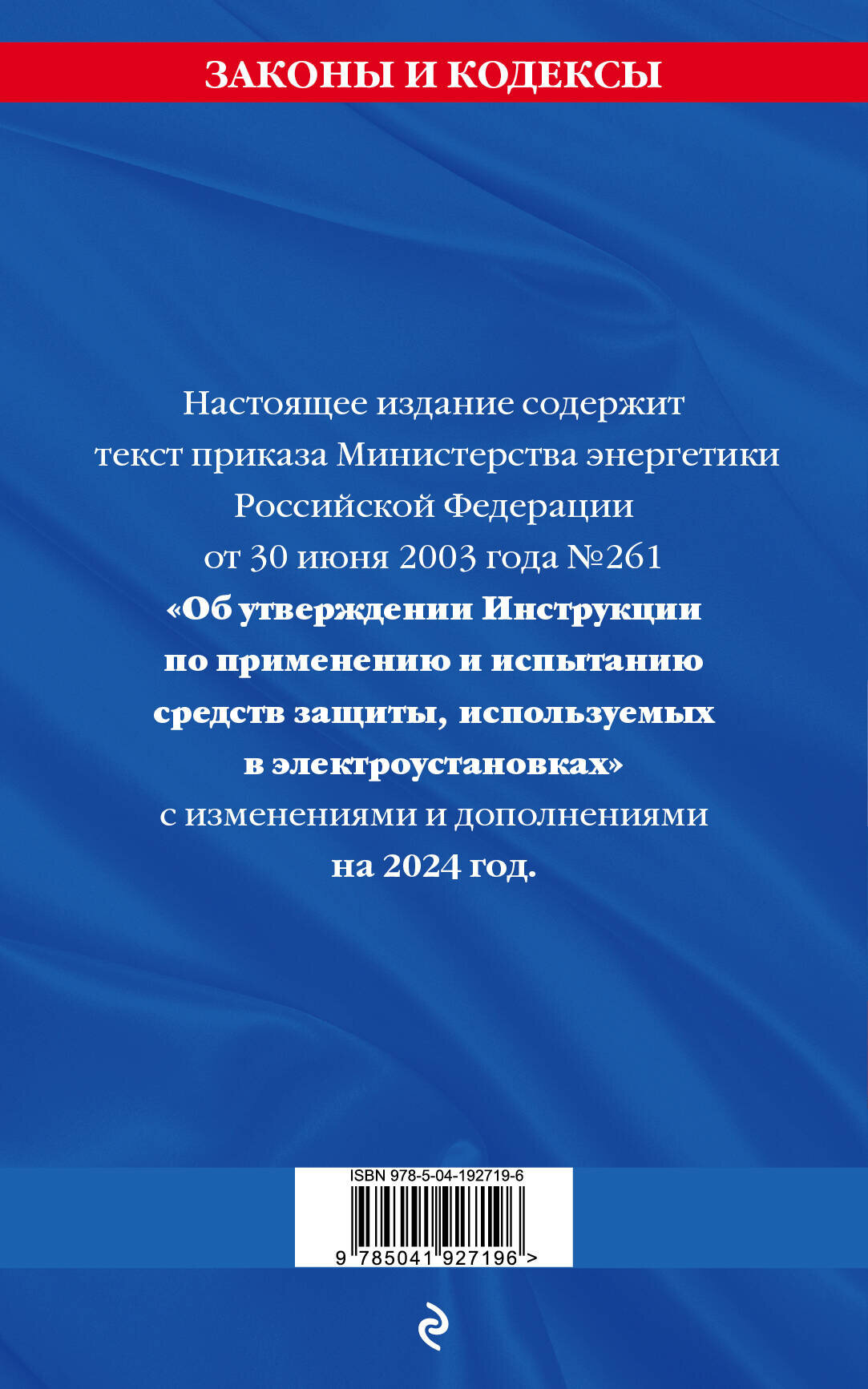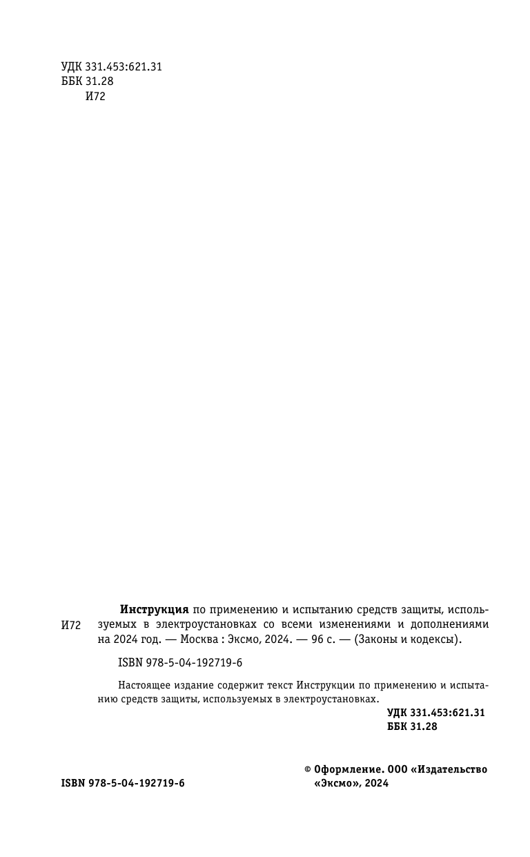 Инструкция по применению и испытанию средств защиты используемых в электроустановках со всеми изм. и доп. на 2024 год (Волнухина Д.); ООО "Издательство "Эксмо", 2023