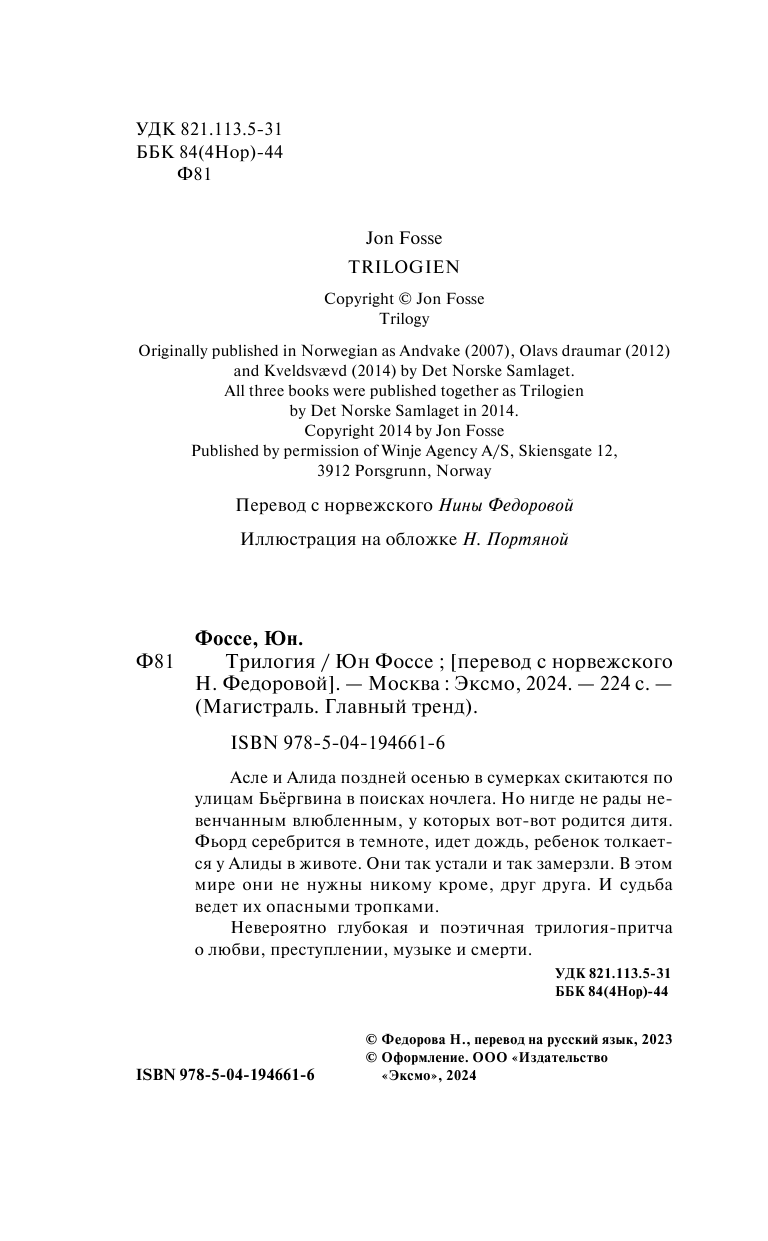 Книга: Трилогия (Юн Фоссе); Эксмо, Редакция 1, 2023