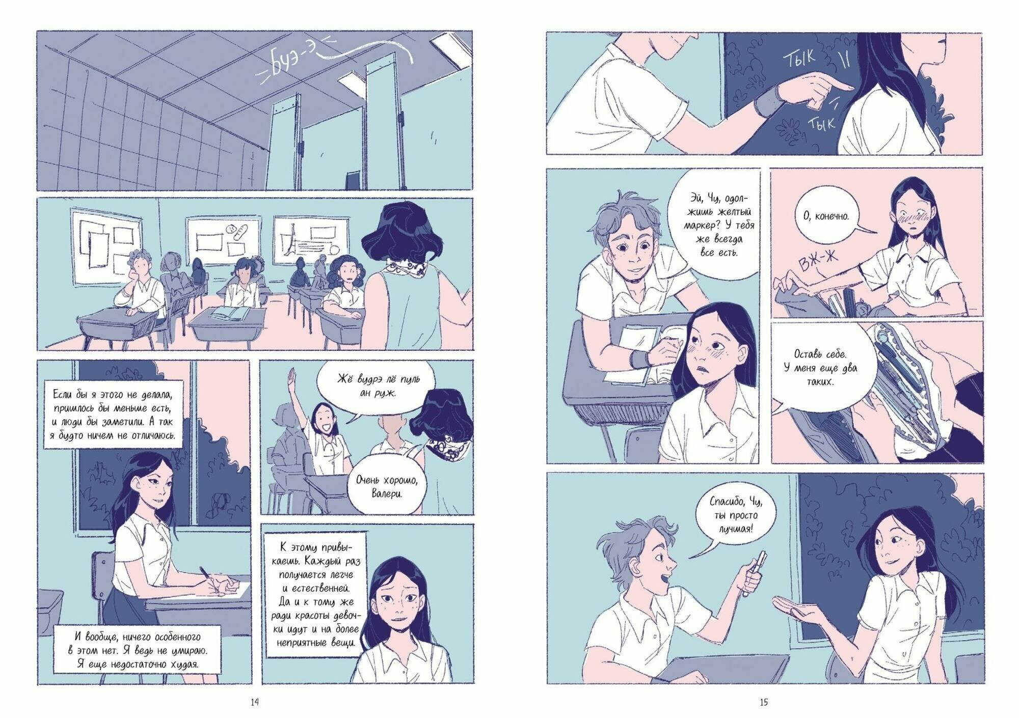 Графическая история о девушке Валери, которая страдает расстройством пищевого поведения. Героиня считает, если она вдруг станет толстой, то ее перестанут любить окружающие. Но постепенно благодаря друзьям и их поддержке девушка понимает, что все не так. Валери обращается за помощью и меняет свою жизнь. Это очень трогательная, терапевтическая история о пути к себе, о принятии и любви к себе.