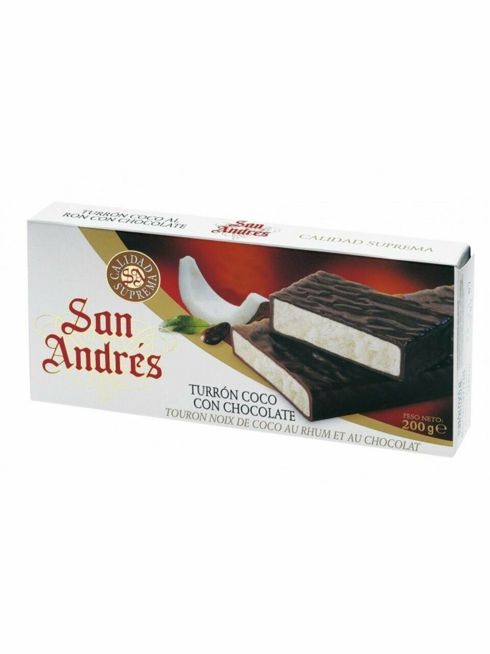 Сочетание нежной кокосовой стружки и шоколада уже давно признано беспроигрышным. Использование в качестве оболочки темного шоколада помогает десерту избежать приторности, делает его более утонченным и гармоничным. Производится из смеси сахара, сиропа глюкозы и кокосовой стружки, покрытой темным шоколадом. Испанские продукты бренда "Сан Андрес" производятся в соответствии со строгим контролем качества: это 100% натуральные ингредиенты высшего качества без ГМО. Благодаря безупречному качеству и великолепным органолептическим характеристикам сладостей, продукция компании пользуется популярностью далеко за пределами своей страны.