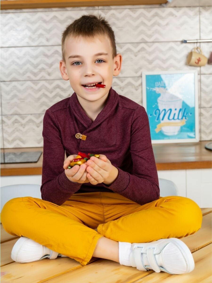| Состав | Сахар, патока, мука пшеничная высшего сорта, масло пальмовое рафинированное дезодорированное, крахмал кукурузный, регуляторы кислотности: кислота лимонная, цитрат натрия, агент влагоудерживающий - глицерин, комплексная пищевая добавка (регулятор кислотности - кислота яблочная, растительный гидрогенизированный жир), желатин, эмульгатор – соевый лецитин, пищевые красители - кармин, куркумин, хлорофиллин, паприка, ароматизаторы. |
