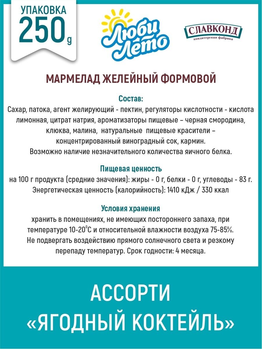 Мармелад Люби лето Ассорти Ягодный коктейль 250 г Славконд