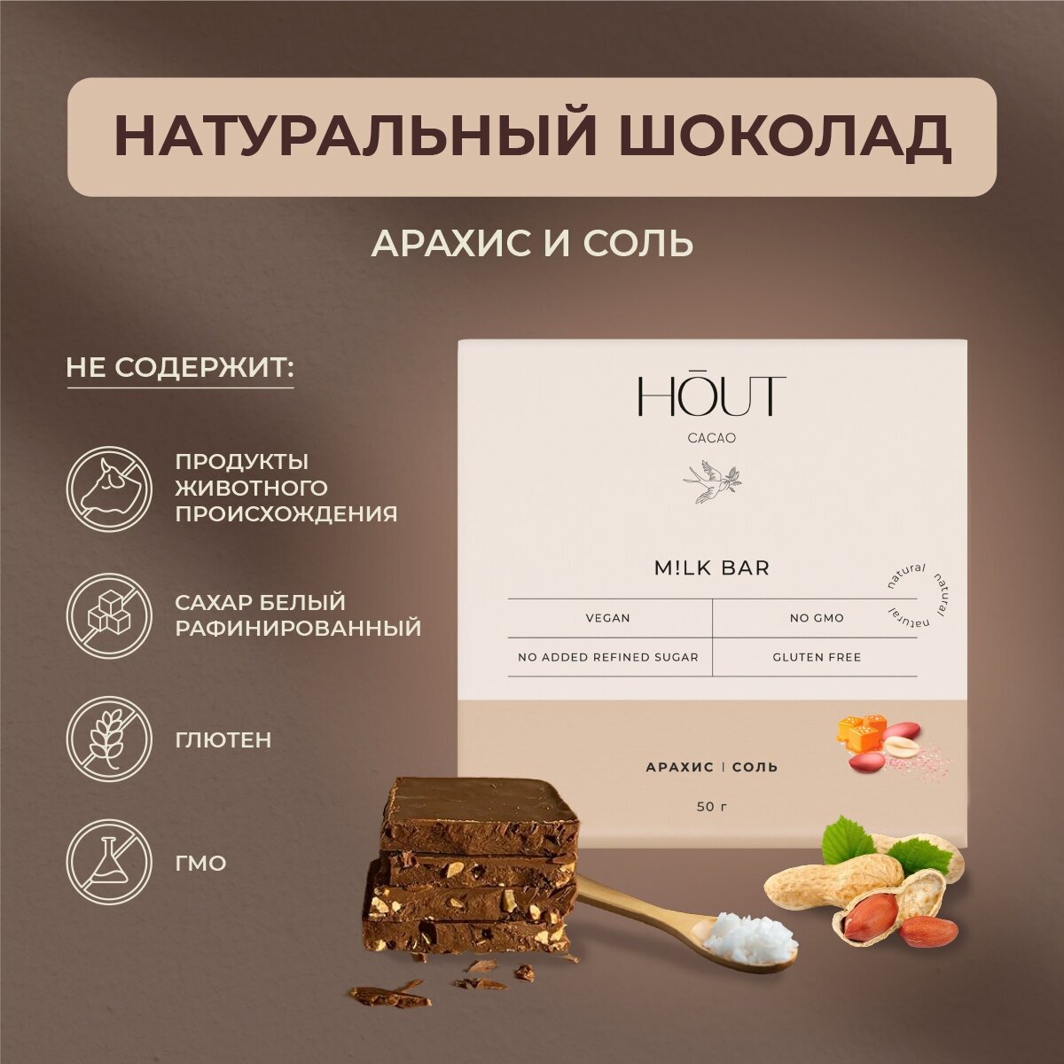Шоколад Hout Cacao M!lk Bar молочный арахис-соль 50 г