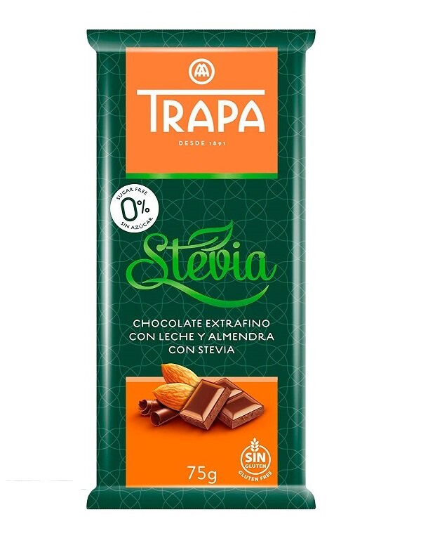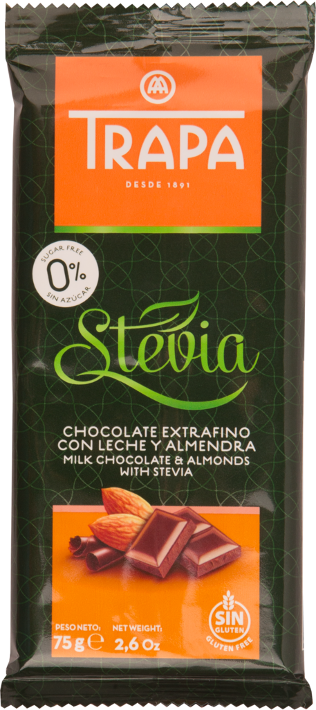Шоколад молочный TRAPA с миндалем со стевией