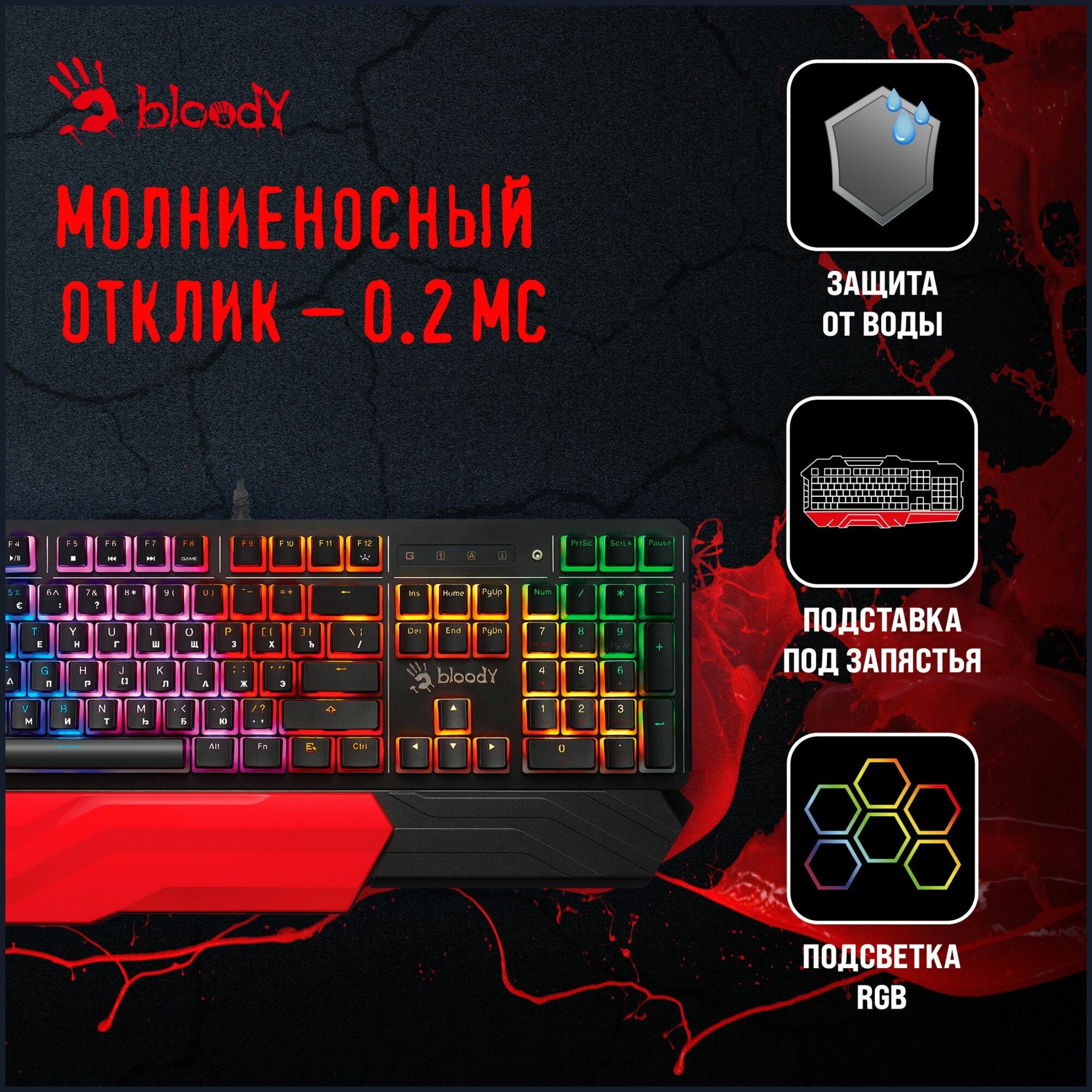 | Особенности | подставка для запястий, подсветка клавиш, для геймеров |