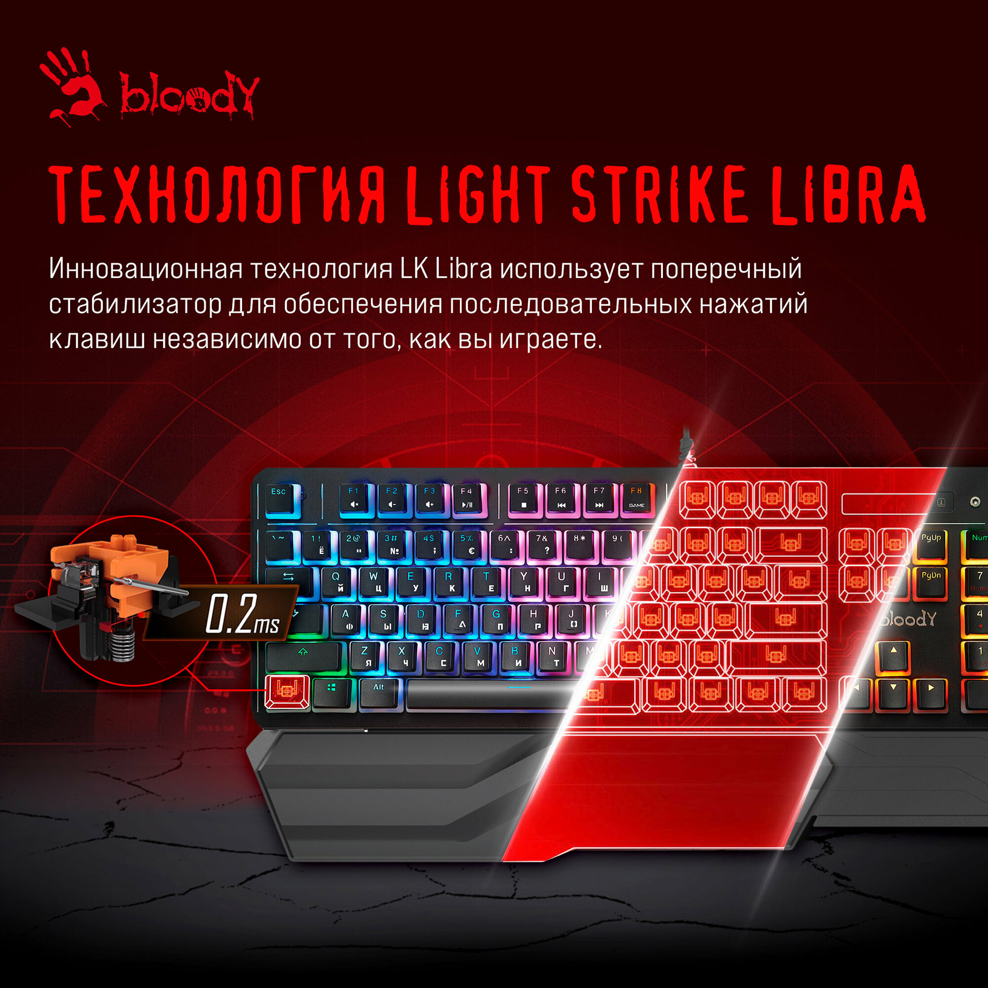 Инновационная технология LK Libra использует поперечный стабилизатор для обеспечения последовательных нажатий клавиш независимо от того, как вы играете.