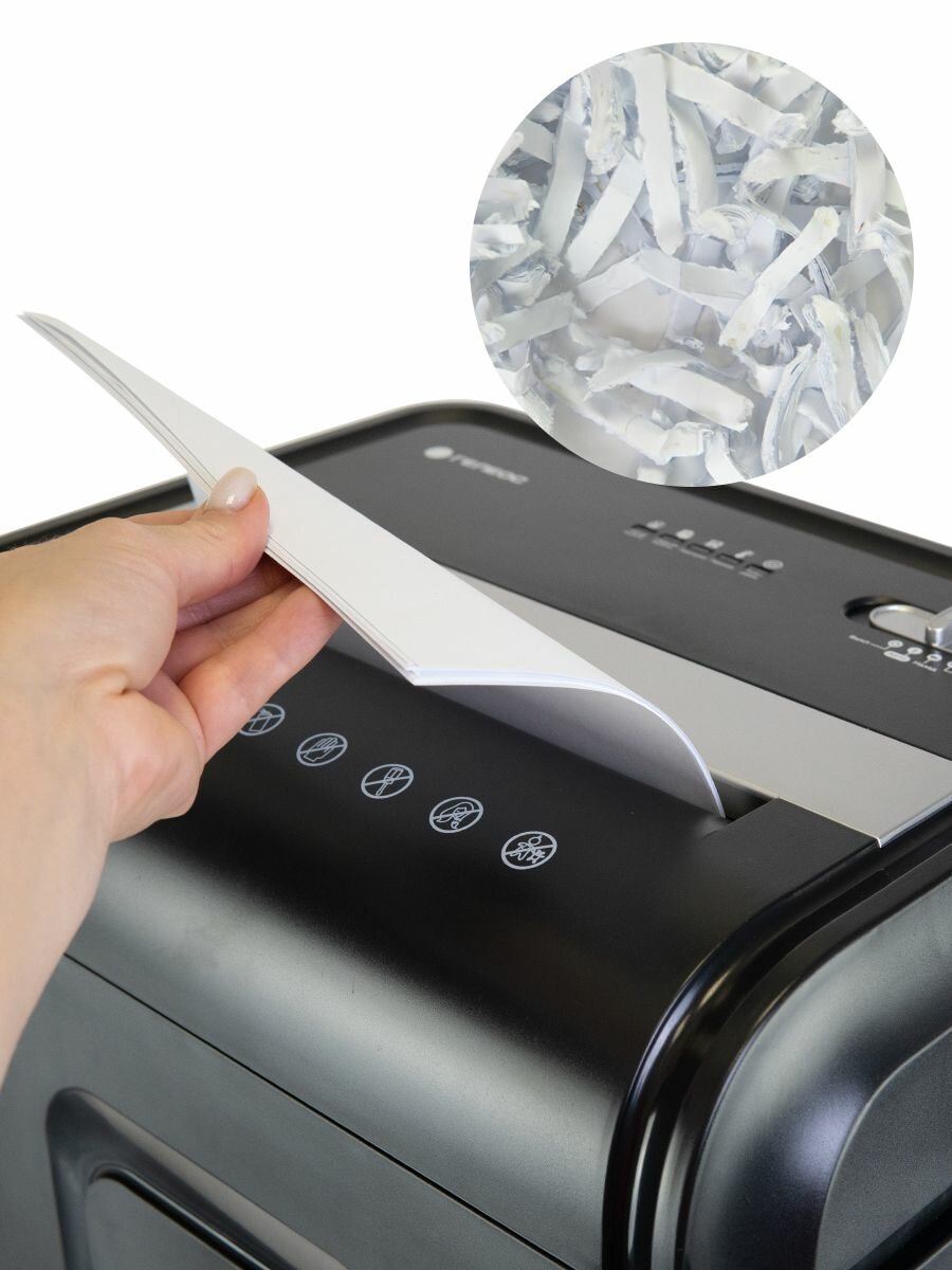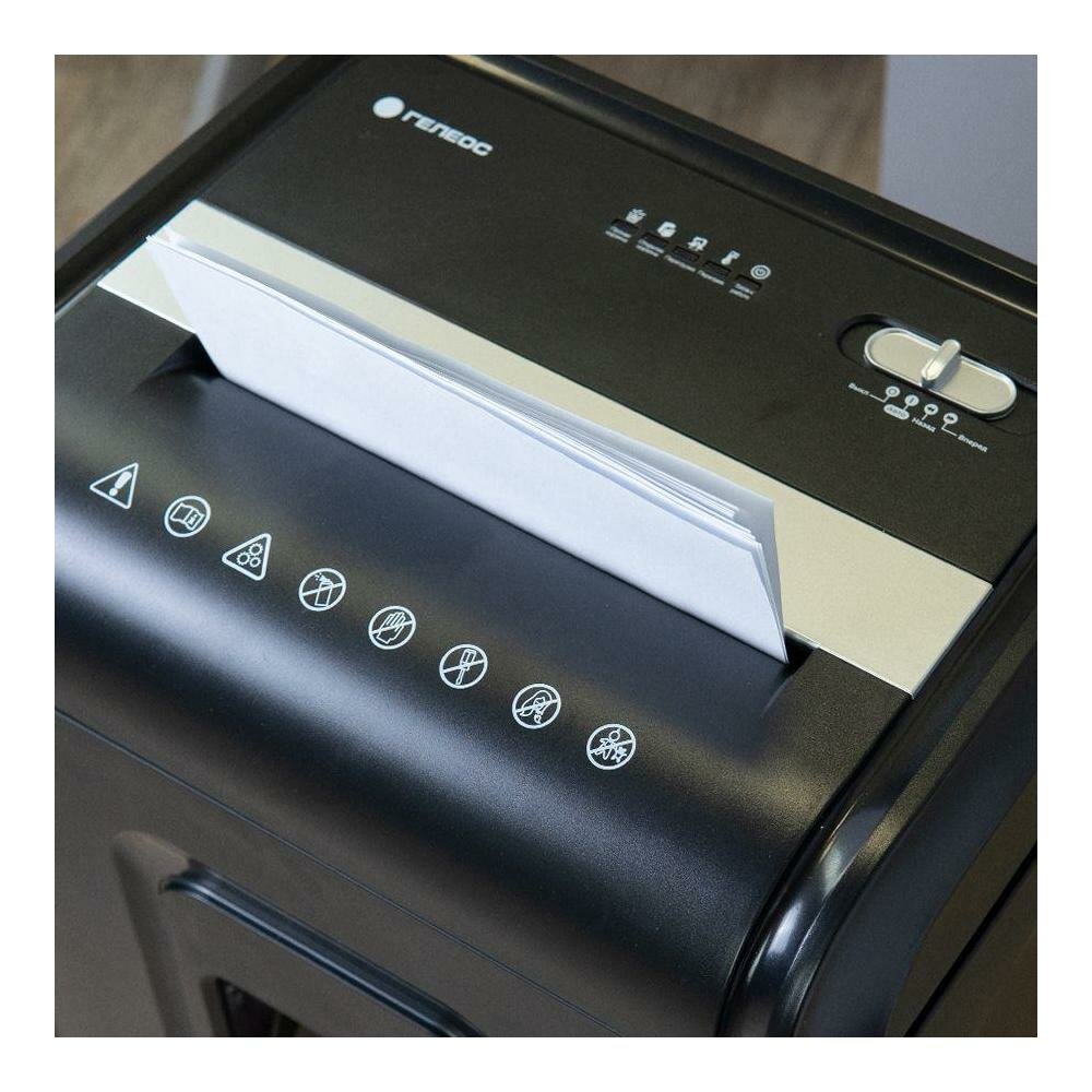 Шредер для бумаги гелеос представляет собой высокоэффективное устройство, способное обеспечить безопасность конфиденциальной информации. Этот шредер обладает множеством функций и характеристик, делая его идеальным для использования в офисах, организациях, школах и дома.Уничтожитель документов гелеос способен уничтожить до 28 листов бумаги плотностью 80 г/м² одновременно. Он оснащен механизмом перекрестной резки, обеспечивающим размер фрагментов 4x30 мм и соответствующий уровень секретности P-4. Ширина загрузочного слота составляет 222 мм, что удобно для уничтожения различных форматов документов.Скорость резки составляет 50 мм/сек, что позволяет оперативно уничтожать большие объемы материалов. Рабочий цикл составляет 45 минут непрерывной работы, за которыми следует 40-минутный перерыв для охлаждения. Это обеспечивает эффективное и безопасное использование устройства.Шредер гелеос не только уничтожает бумагу, но и без труда справляется со скобами, скрепками, CD и пластиковыми картами. Он оснащен функцией реверса, автостопа, автостарта, а также имеет защиту от перегрева. Индикаторы перегрева, наполнения корзины, а также открытой дверцы обеспечивают безопасность и удобство использования.Устройство оснащено выдвижной корзиной с емкостью 32 литра, что позволяет вместить до 600 листов уничтоженных материалов. Габариты шредера составляют 385 х 280 х 593 мм, а также имеются колеса для легкого перемещения устройства из одного места в другое.В целом, измельчитель документов гелеос - это мощное, удобное и надежное устройство, способное обеспечить высокий уровень безопасности при уничтожении различных типов документов и материалов. Данная офисная техника будет полезным подарком руководителю, организации или школе.
