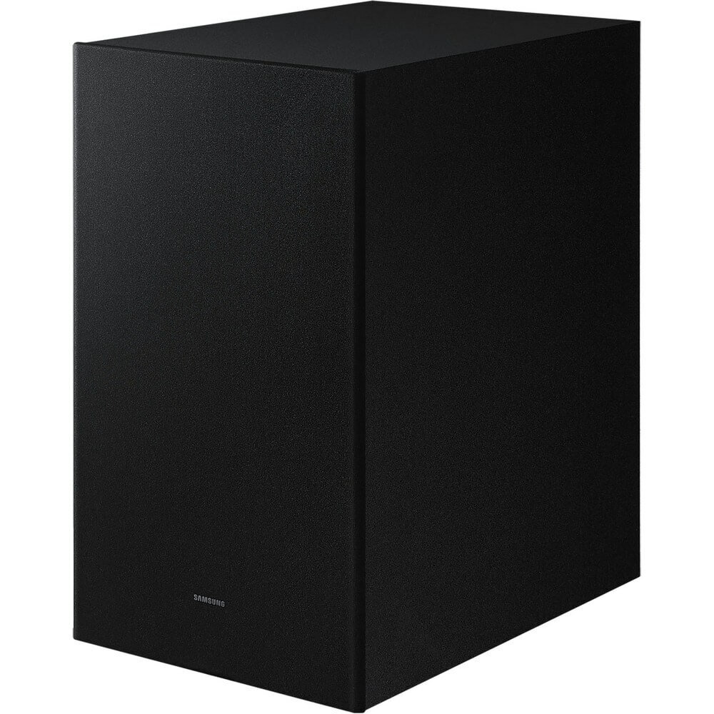 Общие особенности Количество каналов 3.1.2 Количество динамиков 9 Динамик Тип сабвуфера ( активный / пассивный / беспроводный, встроенный ) Беспроводной Центральный динамик Да Динамики, направленные вверх Да Динамики, направленные вправо/влево Нет Широкодиапзонный твитер Да Звук Активный усилитель голоса (AVA) Нет SpaceFit Sound Да (Совместим с ТВ) Поддержка Dolby ATMOS Music,ATMOS,Dolby MAT,Dolby Digital Plus,Dolby True HD Voice Enhance Mode Да Ночной режим Да Режимы звука Расширение окружающего звука, Игровой режим Pro, Адаптивный, Стандартный Hi-Res Audio Декодер Да LPCM Многоканальный Видео Функция 4K Video Pass (пропуск 4К сигнала) Да Технология HDRHDR 10+ Поддержка форматов видео AAC Да MP3 Да WAV Да OGG Да FLAC Да ALAC Да AIFF Да Подключения HDMI In 1 HDMI выход 1 HDMI ARC Да (eARC) HDMI CEC Да Оптический вход 1 Bluetooth Да Bluetooth Кодек SBC Мультиподключение по Bluetooth Нет Wi-FiДа Воспроизведение музыки через USB Нет Универсальный пульт One Remote Control Да Включение с помощью Bluetooth Да Особенности SmartThings App Да Q-Symphony Да Multi Position Rear Speaker Нет Tap Sound Да Поддержка Chromecast Да Поддержка Spotify Connect Да AirPlay2 Да Wireless Dolby ATMOS Да Размеры Размеры (Саундбар) (ШxВxГ) 1110.7 x 60.4 x 21.9 мм Размеры (Сабвуфер) (ШхВхГ) 205.0 x 353.0 x 302.0 мм Размеры коробки (ШхВхГ) 1182 x 468 x 272 мм Вес Вес нетто (Саундбар) 4.8 кг. Вес нетто (Сабвуфер) 5.9 кг. Вес брутто 13.2 кг. Электропитание Потребляемая мощность в режиме ожидания (Саундбар) 0.5 Вт. Потребляемая мощность в режиме ожидания (Сабвуфер) 0.5 Вт. Потребляемая мощность в рабочем режиме (Саундбар) 37 Вт. Потребляемая мощность в рабочем режиме (Сабвуфер) 28 Вт. Универсальный блок питанияДа Поддержка стандарта энергосбережения Energy Star Нет Комплектация Пульт ДУ Да Кронштейн для крепления на стену Да